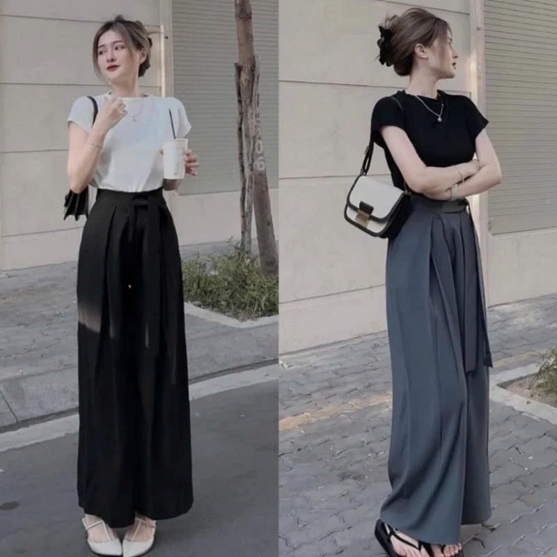 Quần Tây Ống Rộng Nữ Lưng Cao Thắt Nơ Bản To - Vải Ruby Loại 1, Form Đẹp Dễ Phối