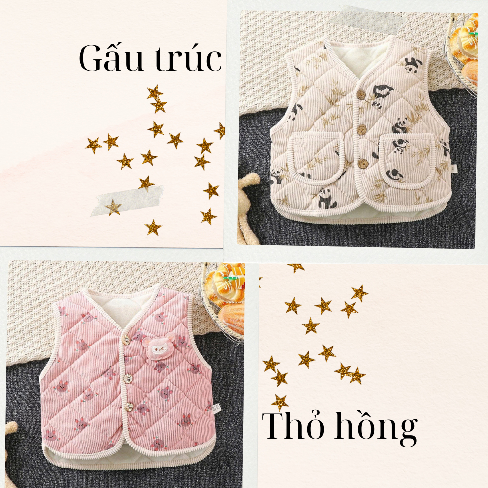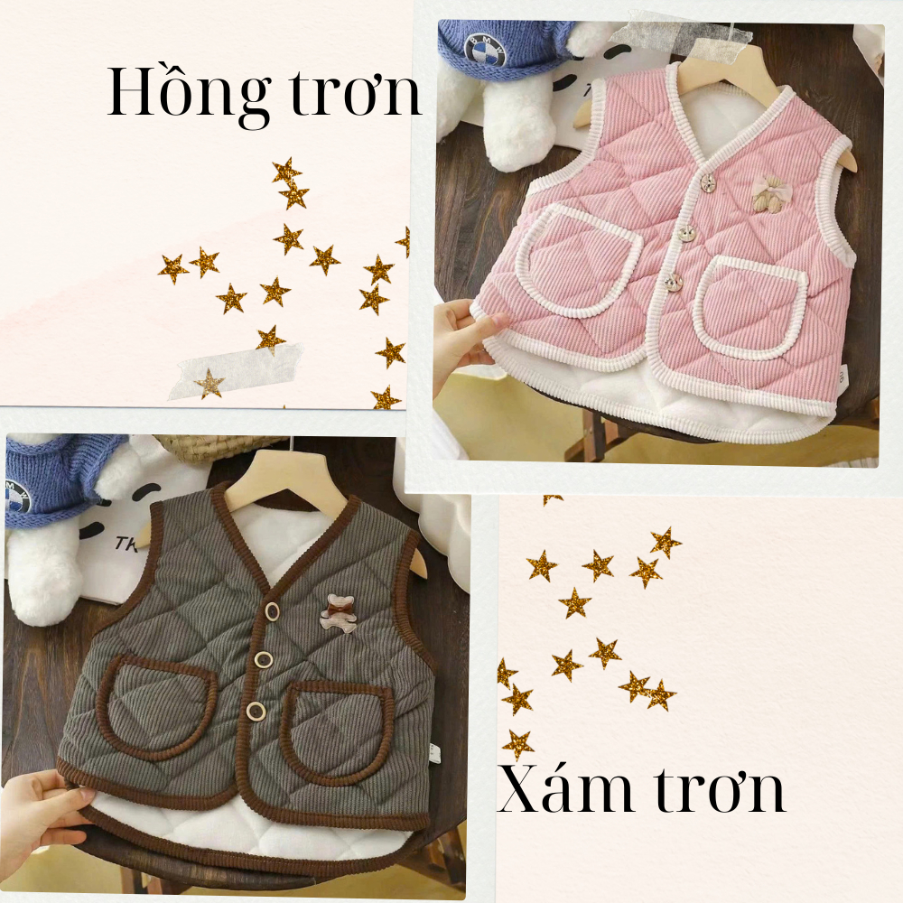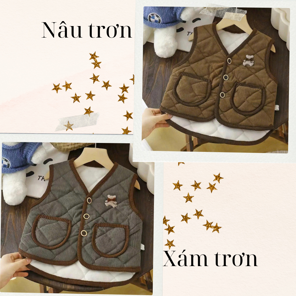 Áo gile cho bé, Áo nỉ trần bông thời trang hàng QC cao cấp, áo khoác bé trai bé gái 7-18kg(From rộng)