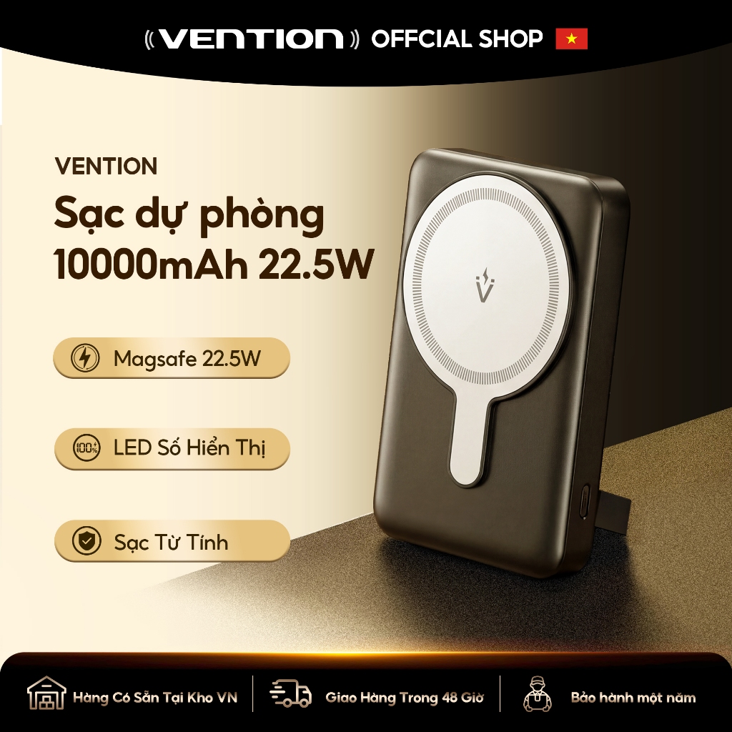 Vention Sạc Dự Phòng Không Dây 10000mAh có sạc nhanh 22.5W Nam Châm - Từ Tính - Pin Sạc dự phòng 5000mAh Power Bank Mini Cao Cấp - Có Magsafe cho Phone 16 - Hàng Chính Hãng