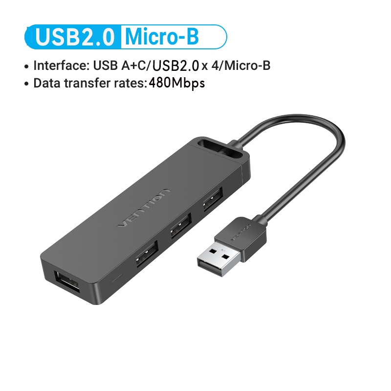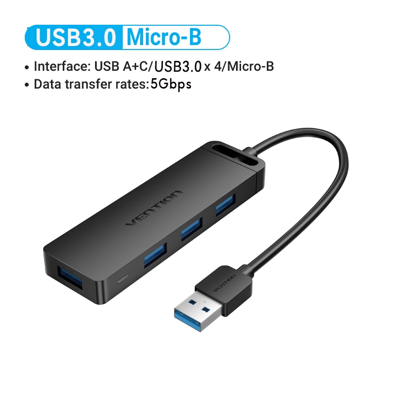 HUB USB 3.0 Vention 5Gbps 5 in 1 A Hub Vỏ Nhựa ABS Cho PC Laptop HDD - Hàng Chính Hãng