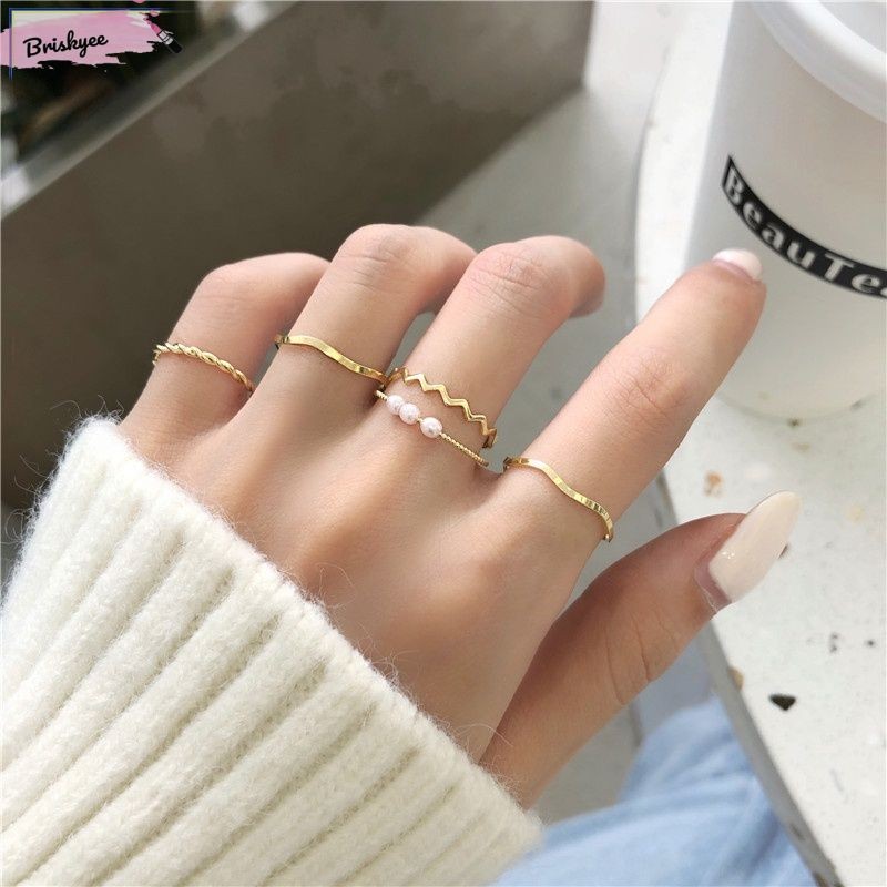 🎶 Set 5 Cái / bộ Bộ Nhẫn Trái Tim Zircon Vàng Thanh Lịch Mở Bạc Nhẫn Có Thể Điều Chỉnh Cho Nữ Phụ Kiện Trang Sức