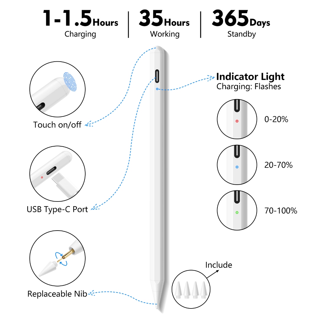 Bút cảm ứng GOOJODOQ cho Pad gen 9 8 7 6th Pro 11 12.9 2018-2023 2018 9.7 Mini 6 Chống Vân Tay Hiển thị phần trăm pin