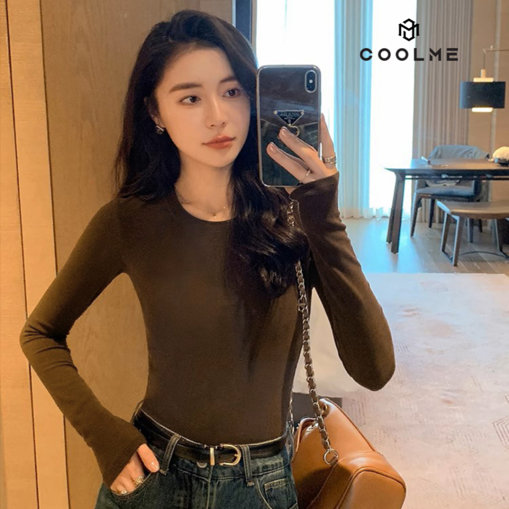 Áo thun nữ tay dài cổ tròn form ôm body, áo nữ dài tay croptop dáng ôm trơn tay xỏ ngón chất thun tăm mát - GXN