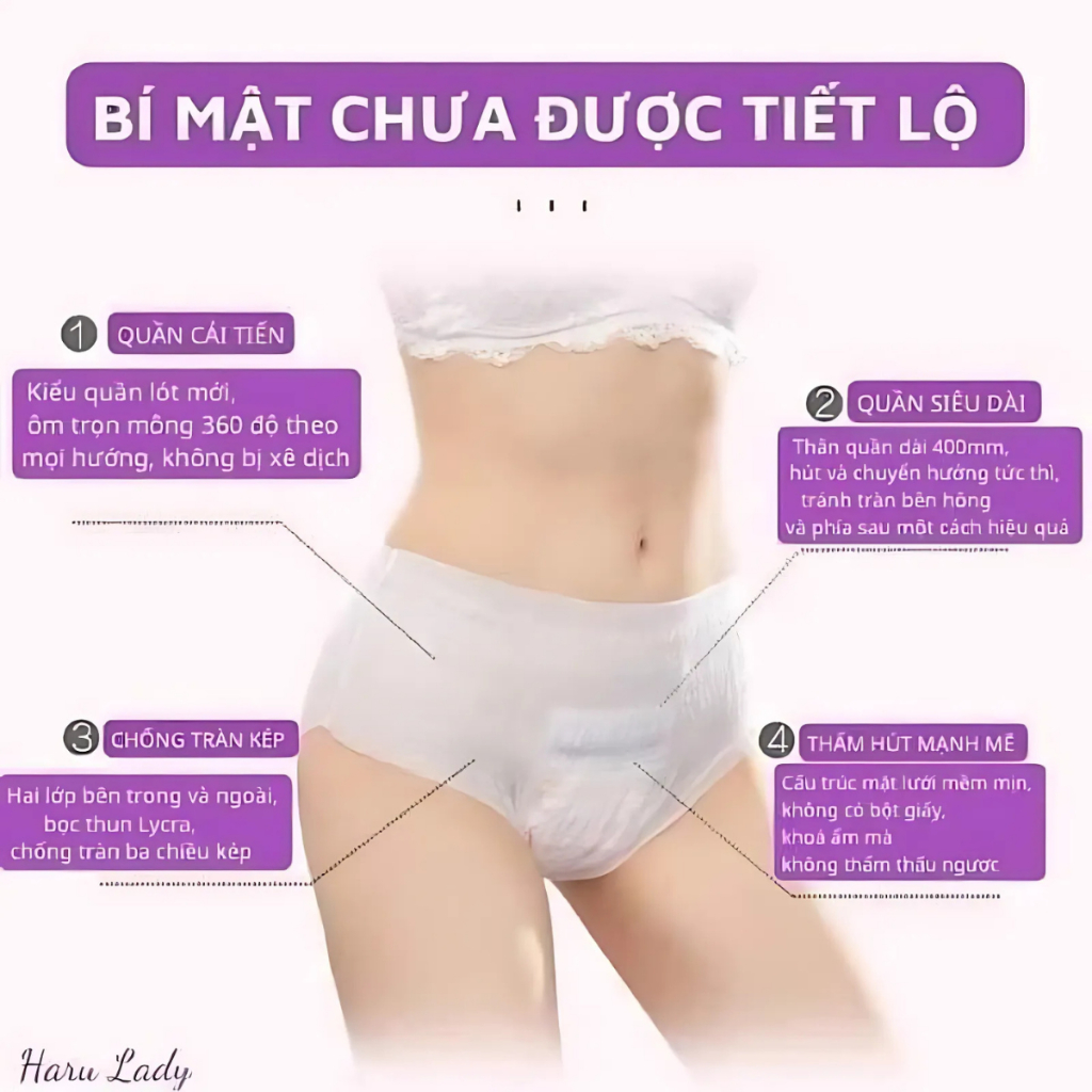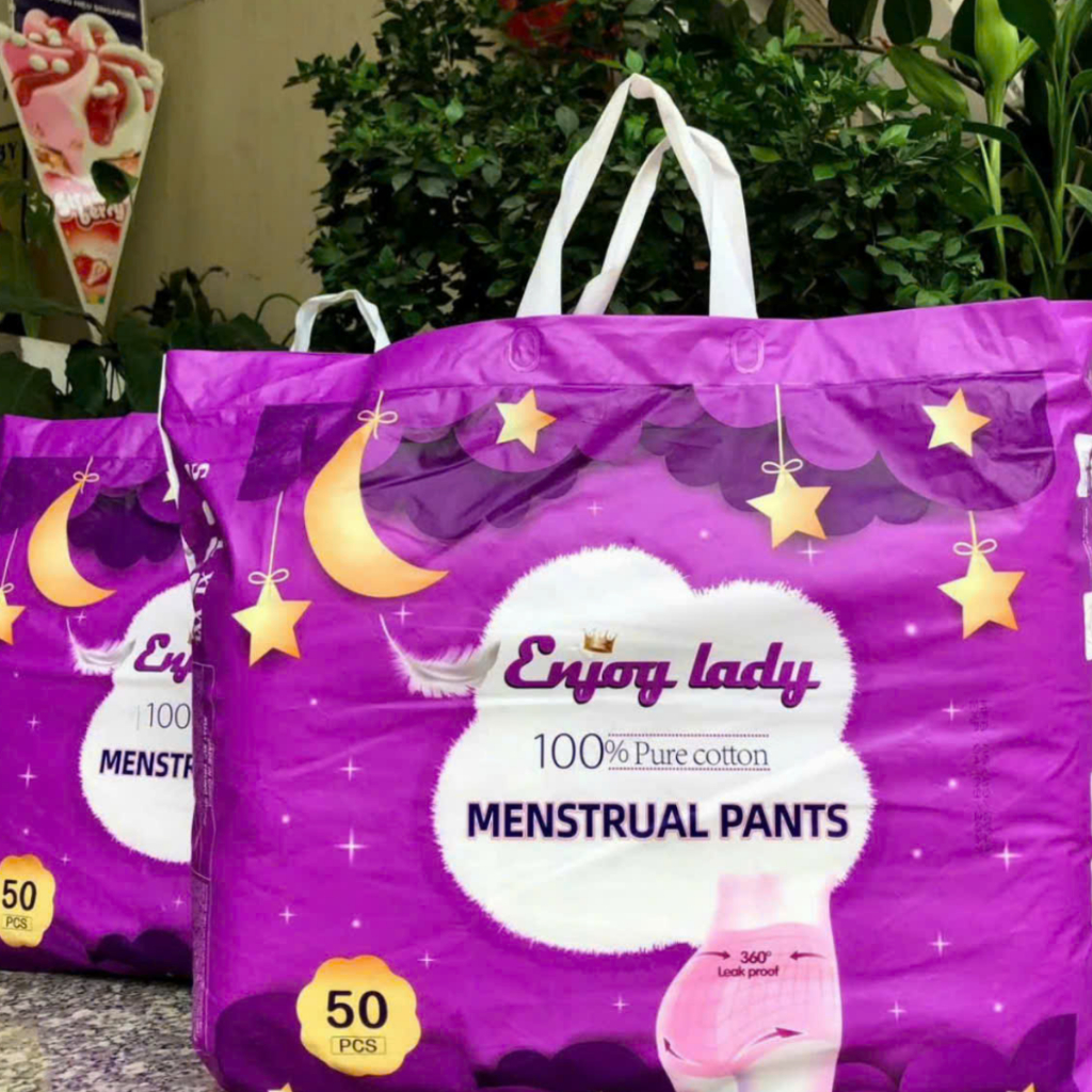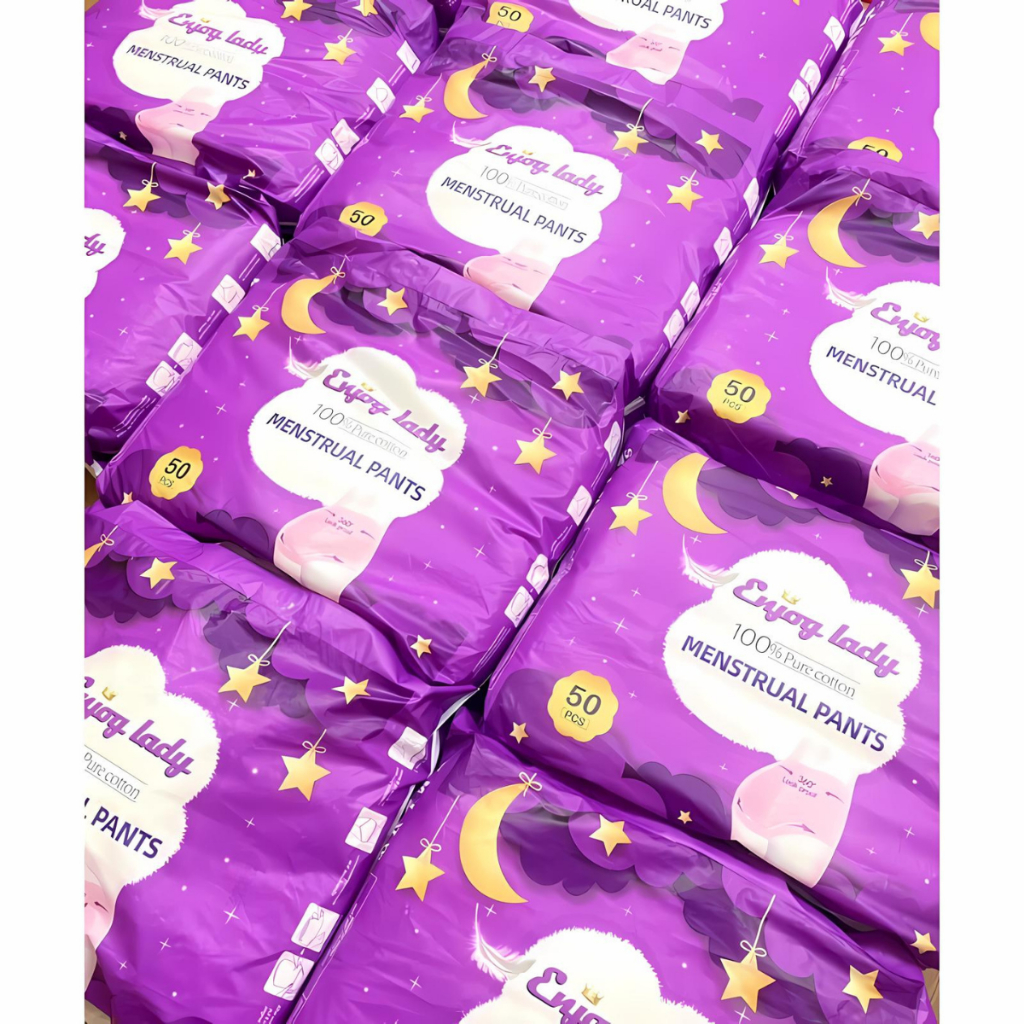 [Che Tên] 50 miếng Băng vệ sinh dạng quần Enjoy Lady bao bì tím có túi riêng (bao bì y ảnh) 30-60kg