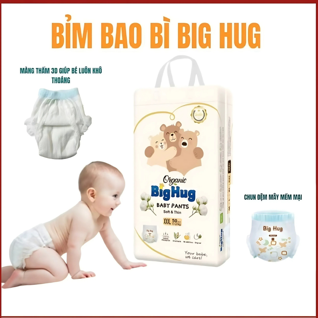 [Bỉm Quần] 100 miếng bỉm Quần BigHug đủ size cho bé form bo mông chống tràn hiệu quả