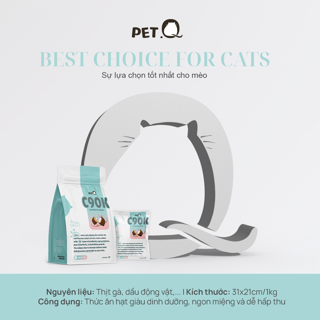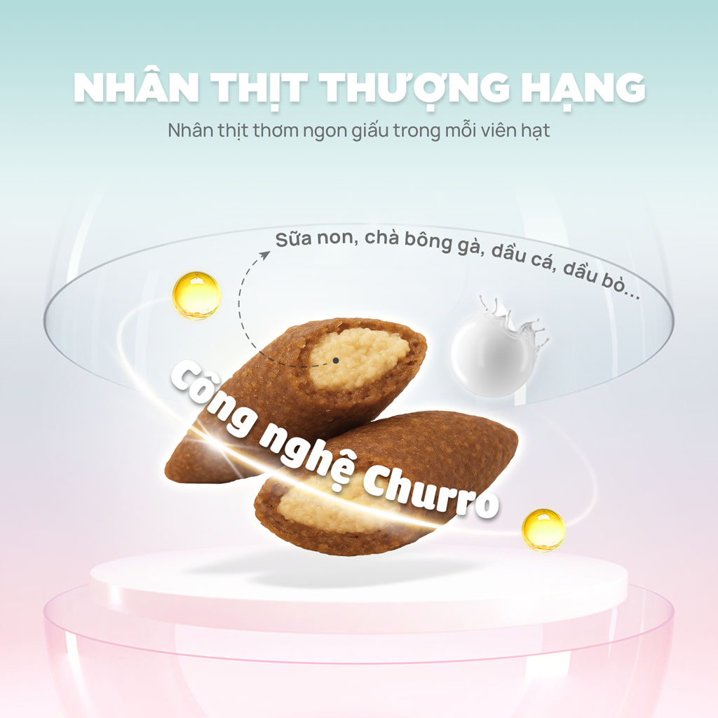 Thức ăn hạt cho mèo con PetQ, Hạt Churro C90K, 90% từ thịt & dầu động vật, Sữa non, Dinh dưỡng, Ngon miệng, Dễ tiêu hóa
