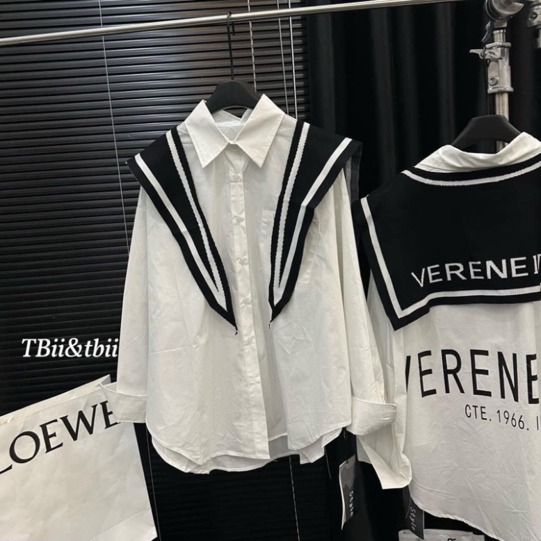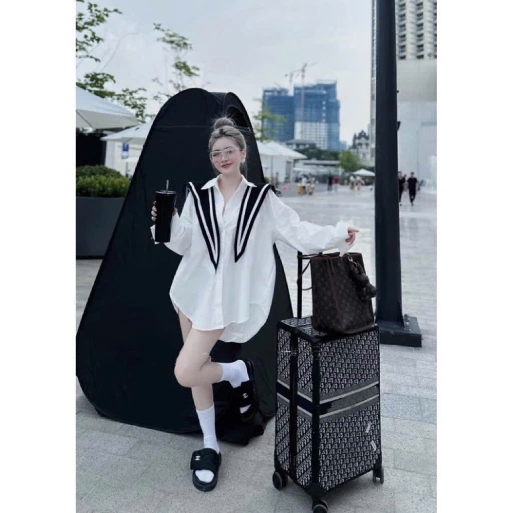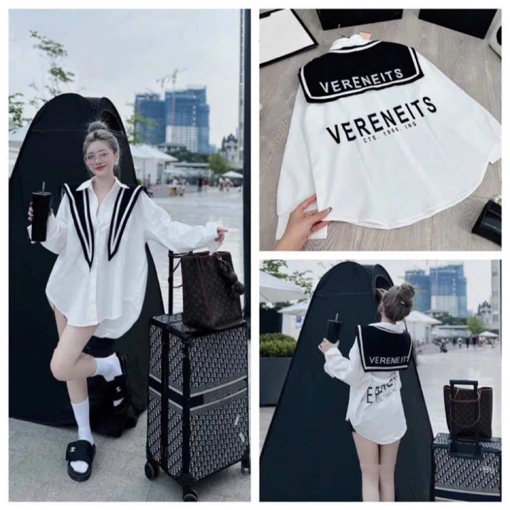 ✔ Áo sơmi phối vạt thuỷ thủ hot hit sơmi thô mềm đẹp, form to thụng , lượn gấu chuẩn mẫu