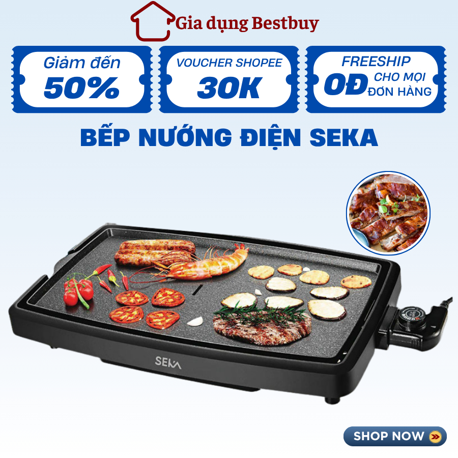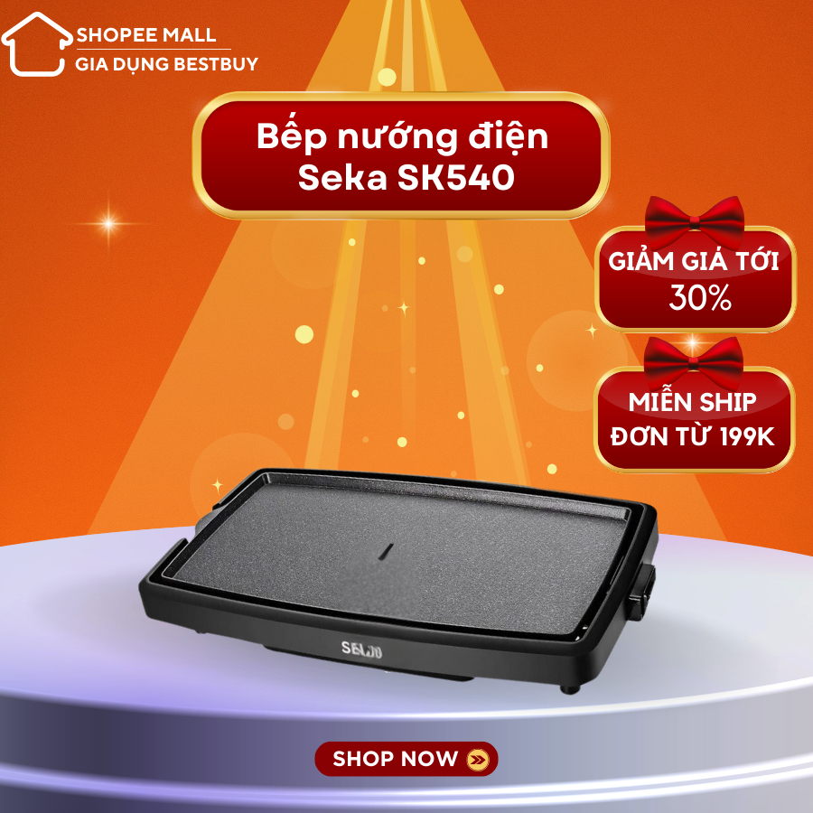 Bếp nướng điện Seka SK540 công suất 1800w không khói, vỉ nướng nhôm phủ chống dính có kèm khay hứng dầu