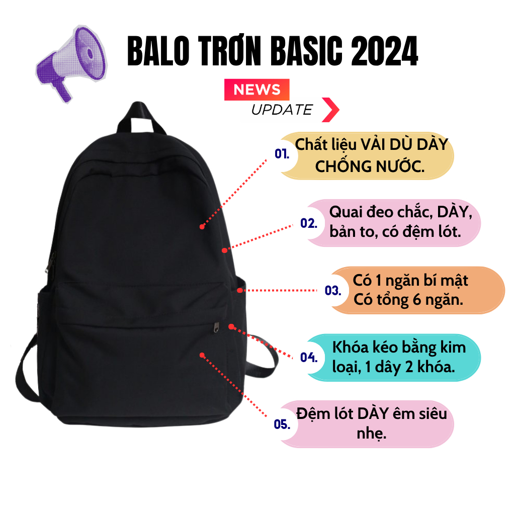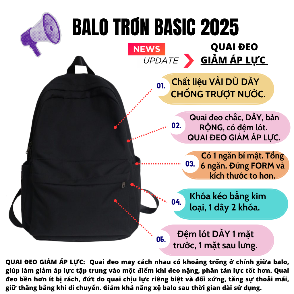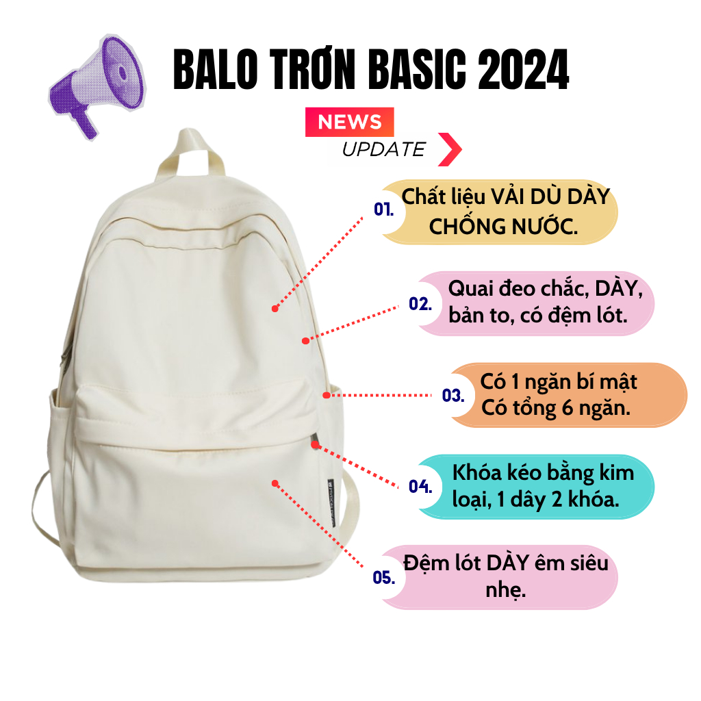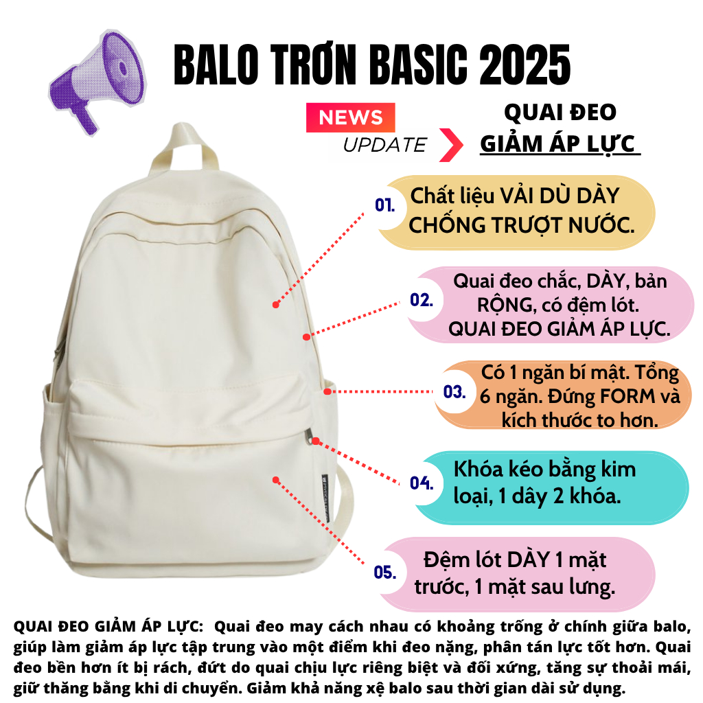 Balo đi học Ulzzang Hàn Quốc trơn basic nam nữ cặp sách đi chơi du lịch thời trang Unisex BL03