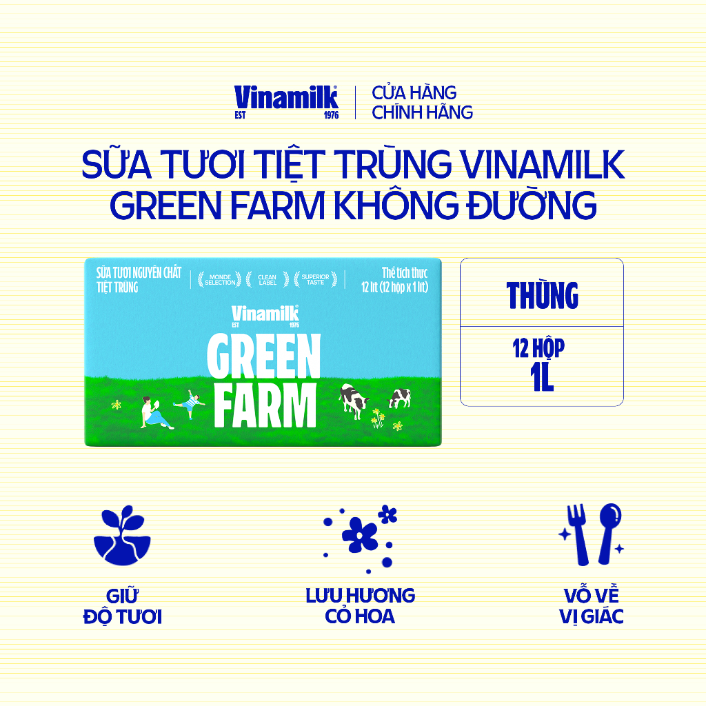 Thùng 12 Sữa tươi tiệt trùng Không đường Vinamilk Green Farm - hộp 1L