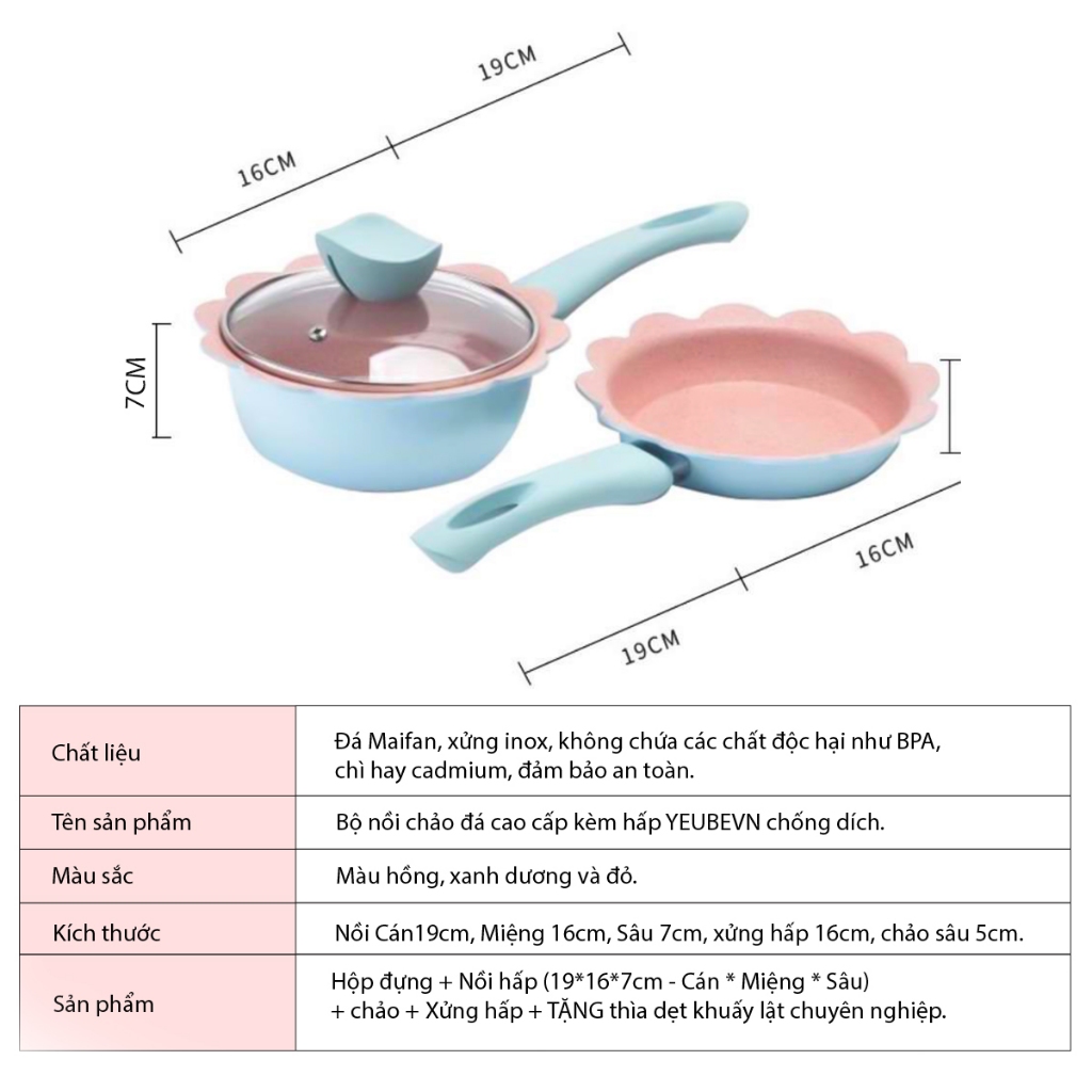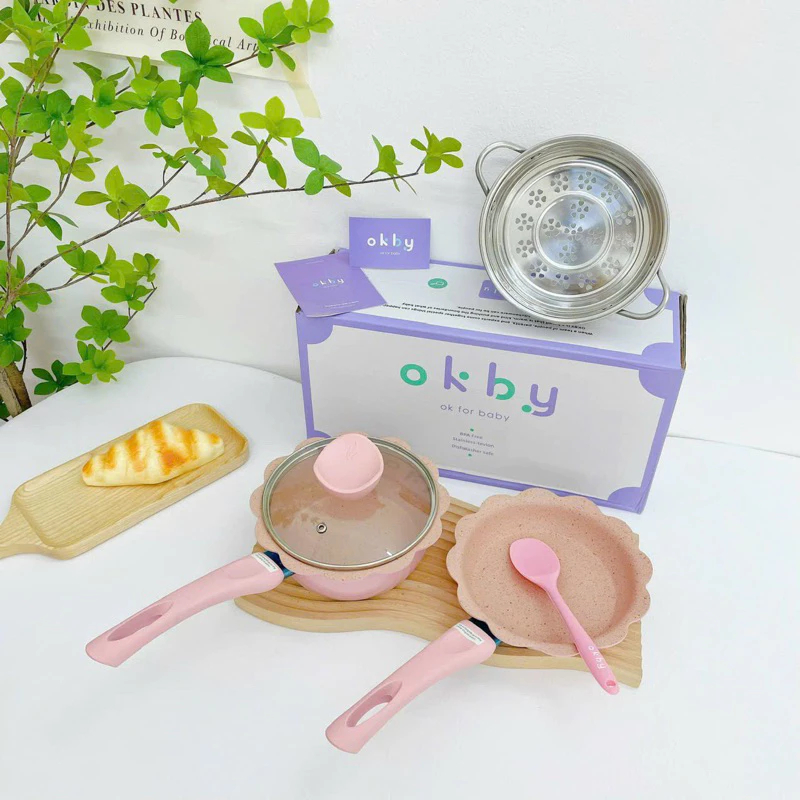 Bộ Nồi Chảo Đá Cao Cấp Kèm Hấp Okby, Lion YEUBEVN Chống Dích, Chế Biến Ăn Dặm Cho Bé