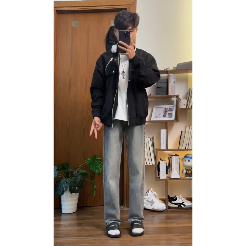 Quần Jean Dài Nam Fom Suông Năm Màu Xám-Xanh-Rêu - Đen Đi Học Đi Làm (Được Kiểm Tra Hàng)