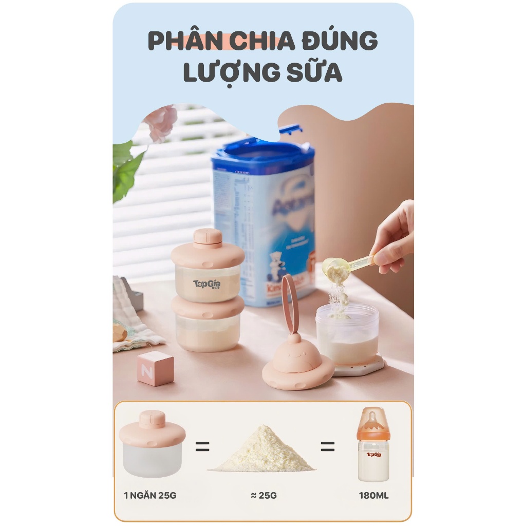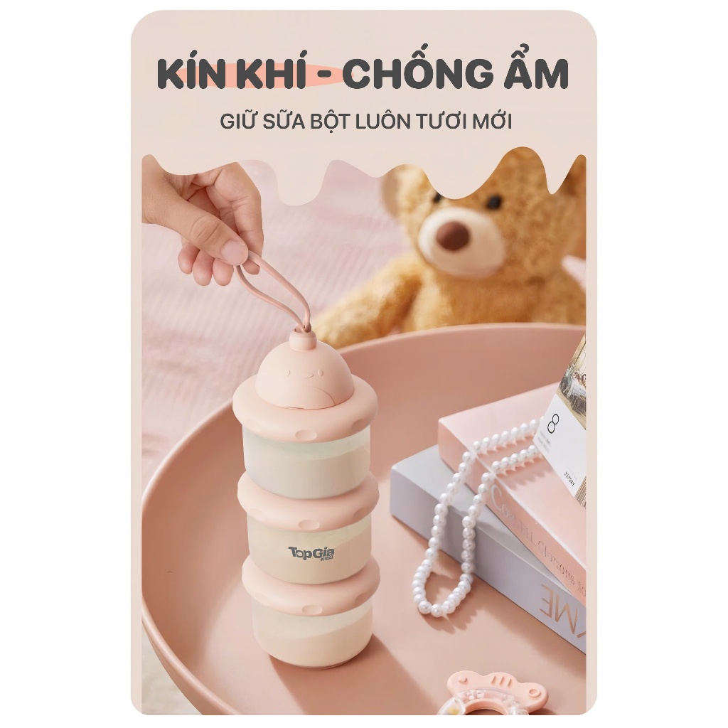 Hộp đựng sữa bột Topgiakids chống ẩm 3 ngăn tiện lợi, Hộp trữ sữa cho bé tiện lợi pha sữa, ăn dặm