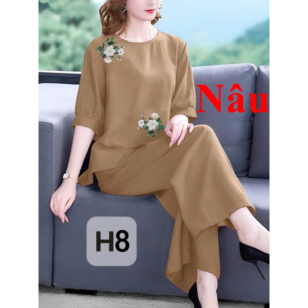 Đồ Bộ Trung Niên Tay Lỡ Dành Cho Mẹ, Cho Bà Chất Vải Đũi Mềm Mịn, Hoa Thêu Tỉ Mỉ, Tôn Dáng Chuẩn