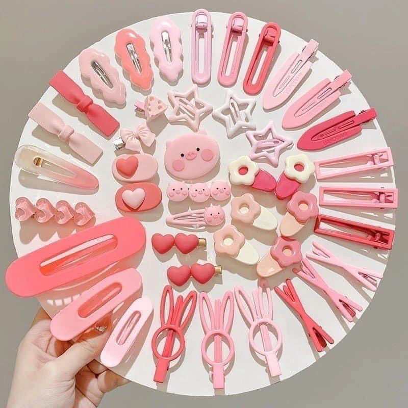 [Không Hộp Không Giá Treo] Set 50 Kẹp Tóc Bé Gái - Màu Hồng/Xanh, Dễ Thương, Phong Cách Hàn Quốc