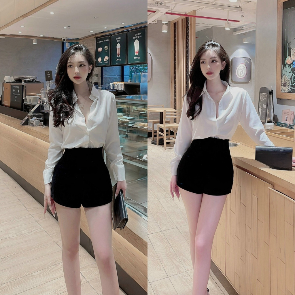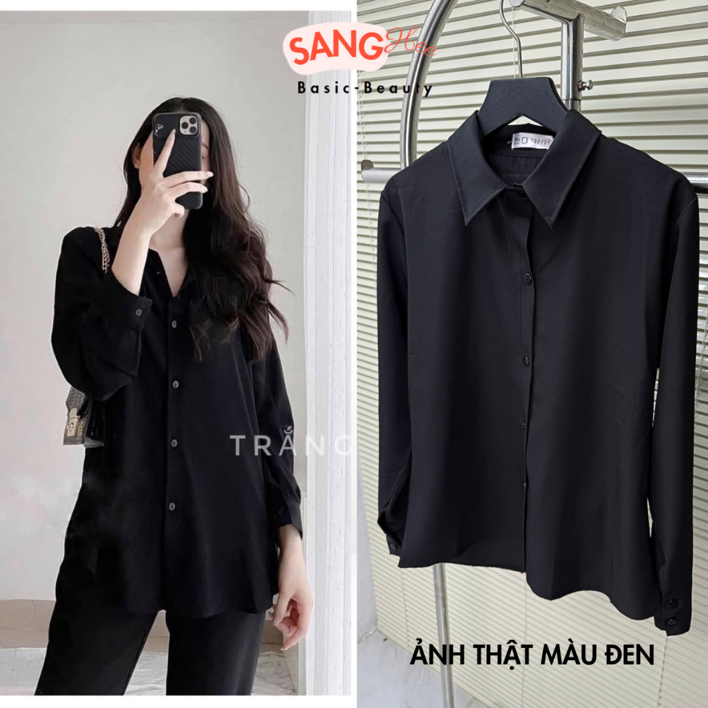 Áo Sơ Mi Nữ Trắng Trơn Công Sở, ( CHẤT XỊN - ẢNH THẬT ) Áo Sơ Mi Nữ Công Sở Chất Mát (Trắng, Đen)112
