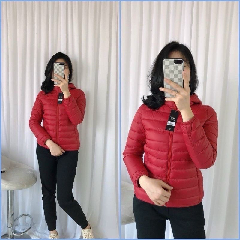 Áo khoác phao lông vũ siêu nhẹ nữ 3 lớp ấm áp cao cổ nhiều màu hàn quốc, Áo phao thể thao nữ mùa đông đỏ xanh than rêu