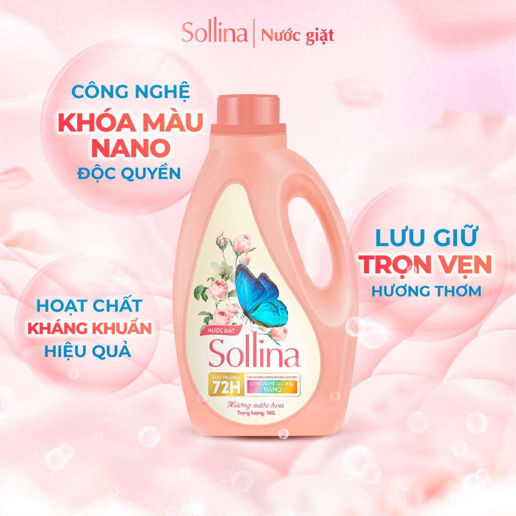 [QUÀ TẶNG KHÔNG BÁN] Nước Giặt Quần Áo Thường Sollina 1L/Chai - Công nghệ Khoá Màu Nano, Lưu Hương Nước Hoa 72H