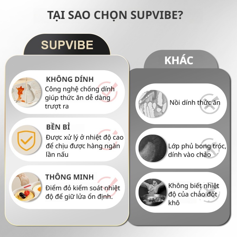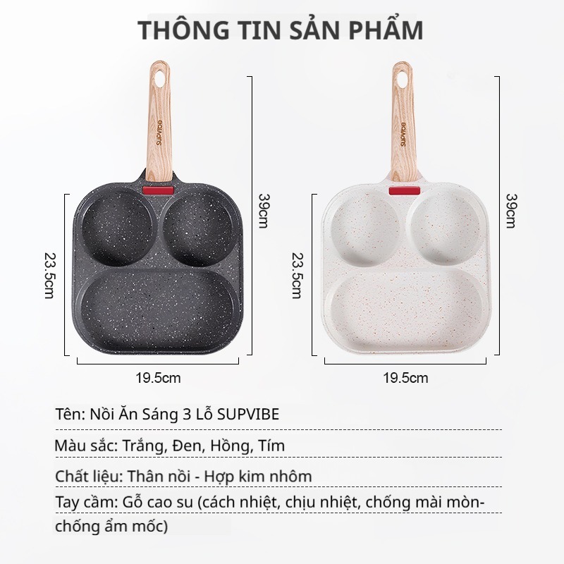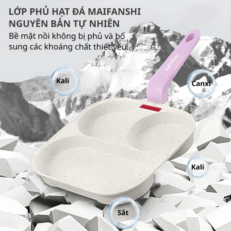 SUPVIBE Chảo chống dính chiên trứng cuộn 3 ngăn đáy từ,Chảo chiên ốp trứng dùng được bếp gas/ bếp từ
