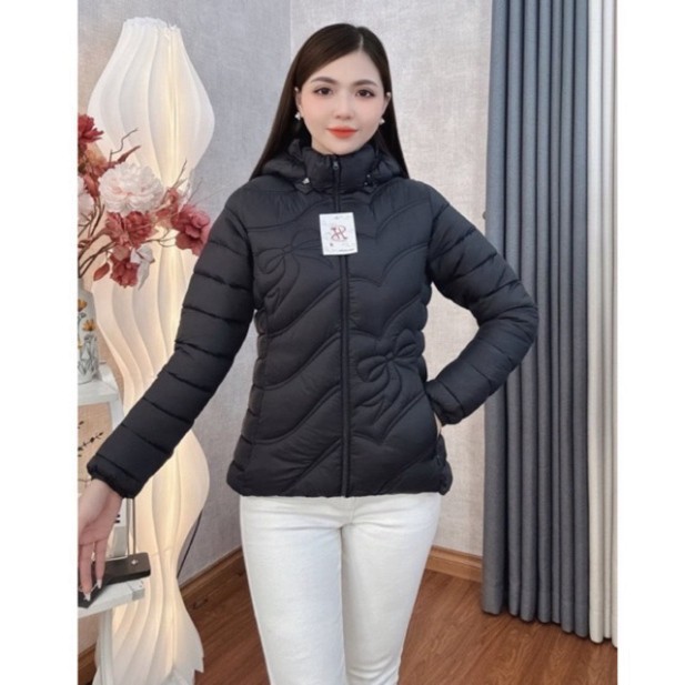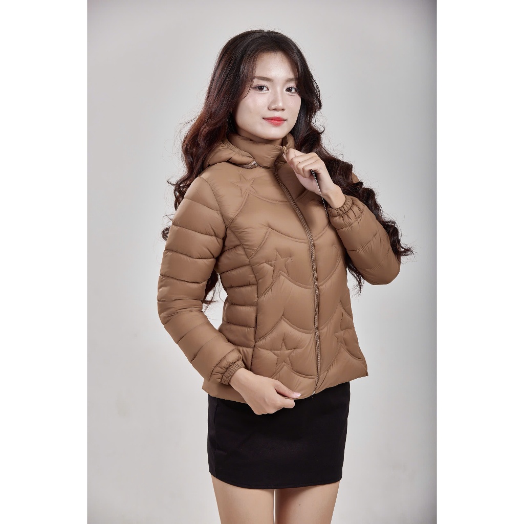 Áo Phao Siêu Nhẹ Nữ Chần Bông Vi Sinh Kháng Khuẩn Họa Tiết Ngôi Sao , Vải Polyester | Dáng Ngắn Có Mũ Tháo Rời | OCEANIS
