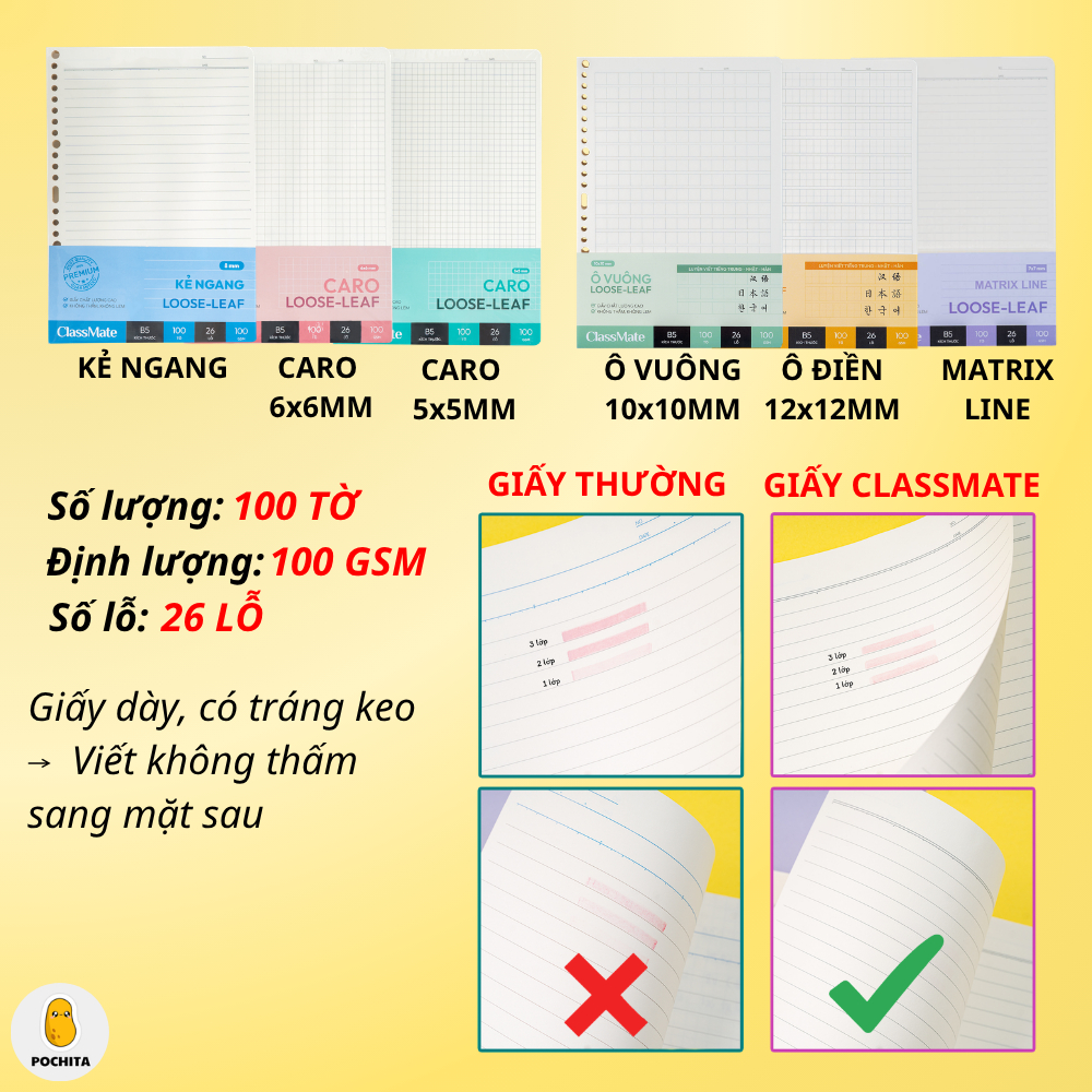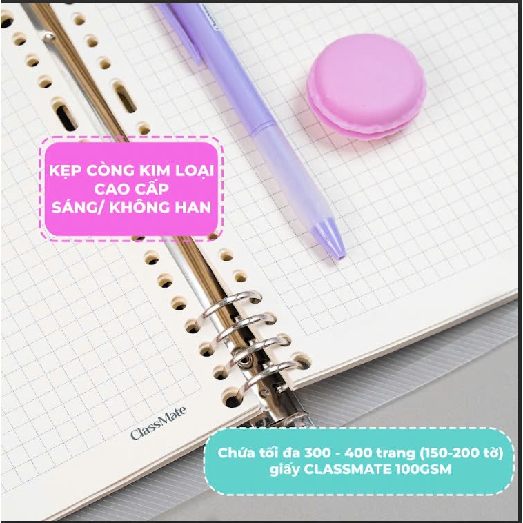Sổ Còng A5 B5 Kèm Giấy Refill 100gsm Đủ Loại Kẻ Ngang, Caro Không Thấm Nhoè, Bìa Còng Binder 8 Còng Kim Loại Chắc Chắn