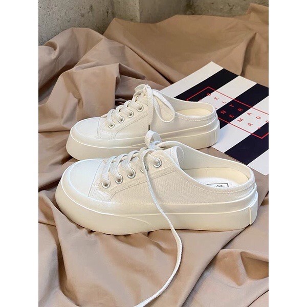 Giày sục thể thao nữ độn đế mũi viền Cao Cấp - giày đạp gót nữ tăng chiều cao Basic 3 màu siêu hot