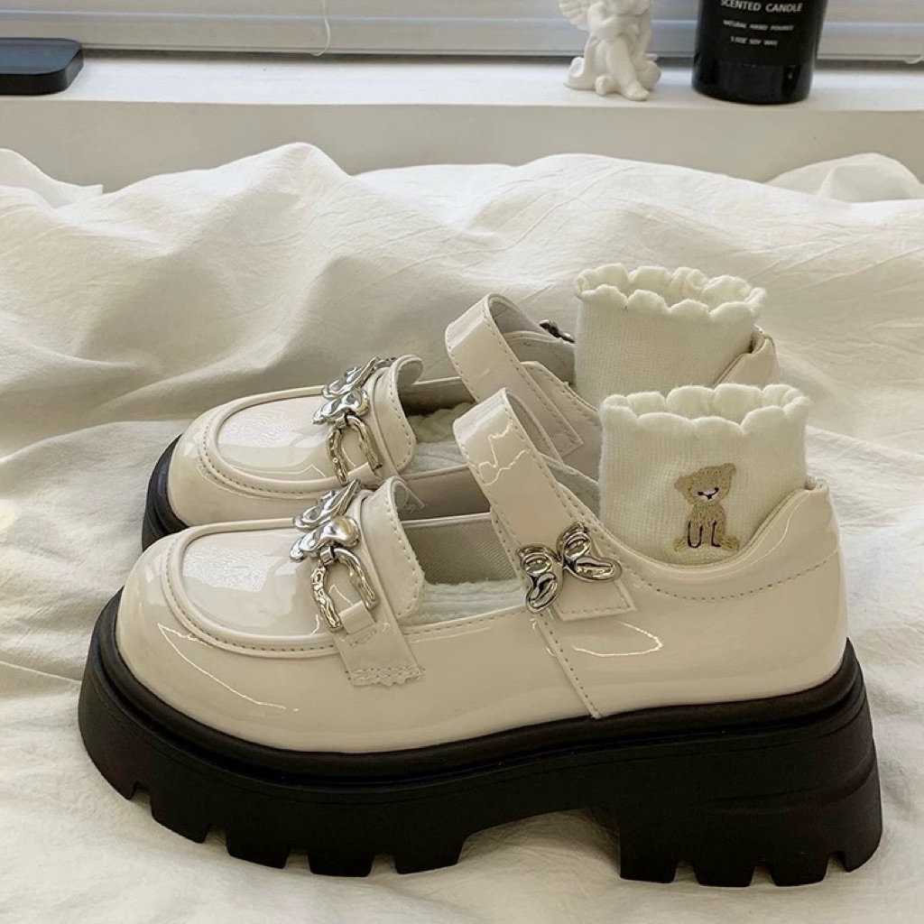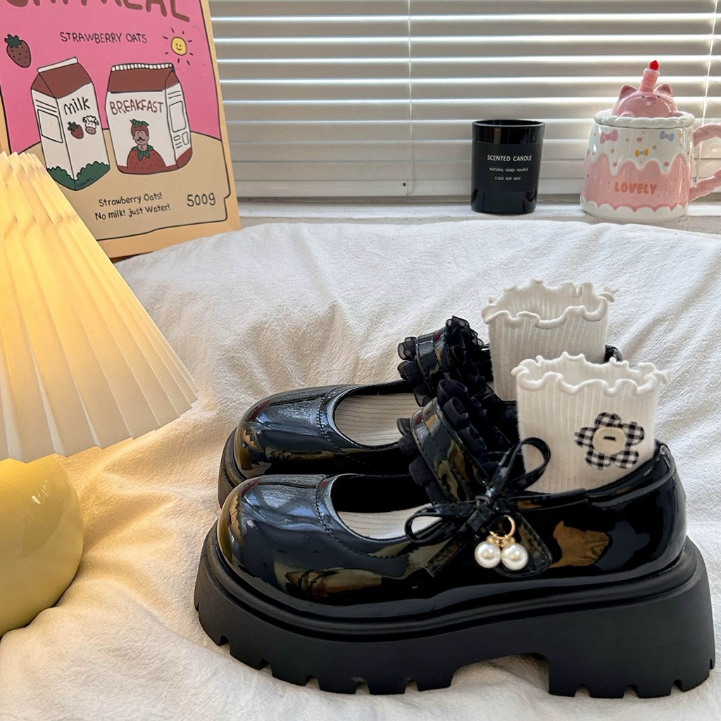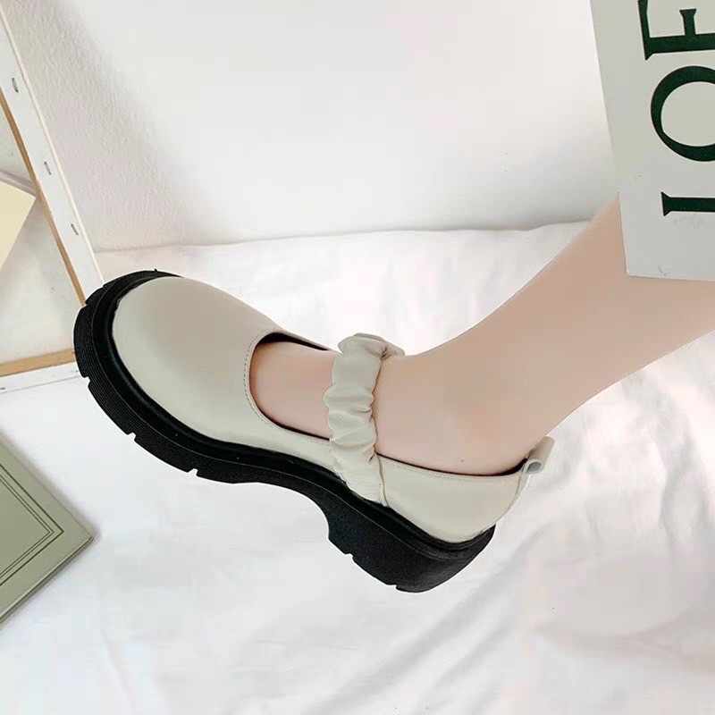 Giày búp bê lôlita quai chun nữ da mềm độn đế cao cấp