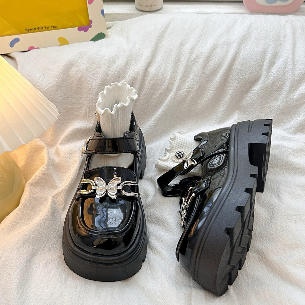 Giày Búp Bê Lolita Nữ Đế Cao 4-5cm Quai Dán Đai Móc LAPI