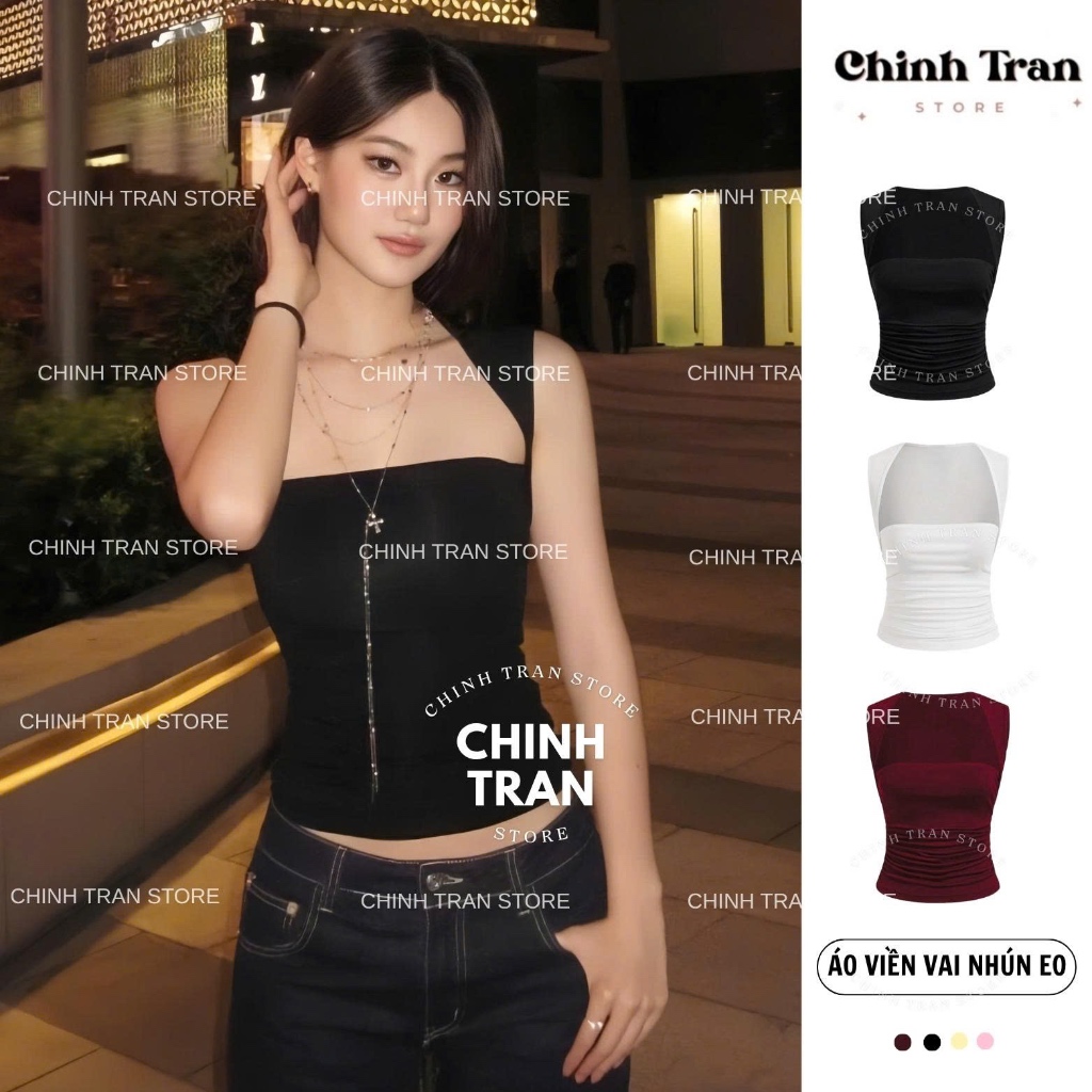 Áo Sát Nách Cúp Ngực Nhún Eo Viền Vai Nhỏ Chất Thun Cotton Co Giãn Nữ Tính Trendy - Chinh Trần Store