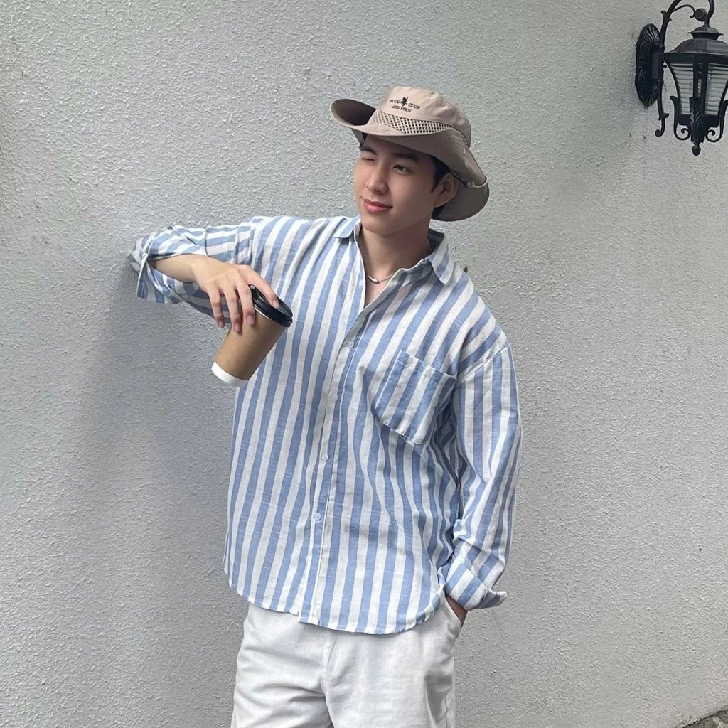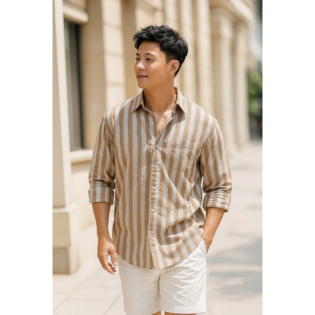 Áo Sơ Mi nam cộc tay Kẻ sọc Kelly Chất Đũi thô thoáng mát chống nhăn form rộng hằng ngày đi chơi đi biển