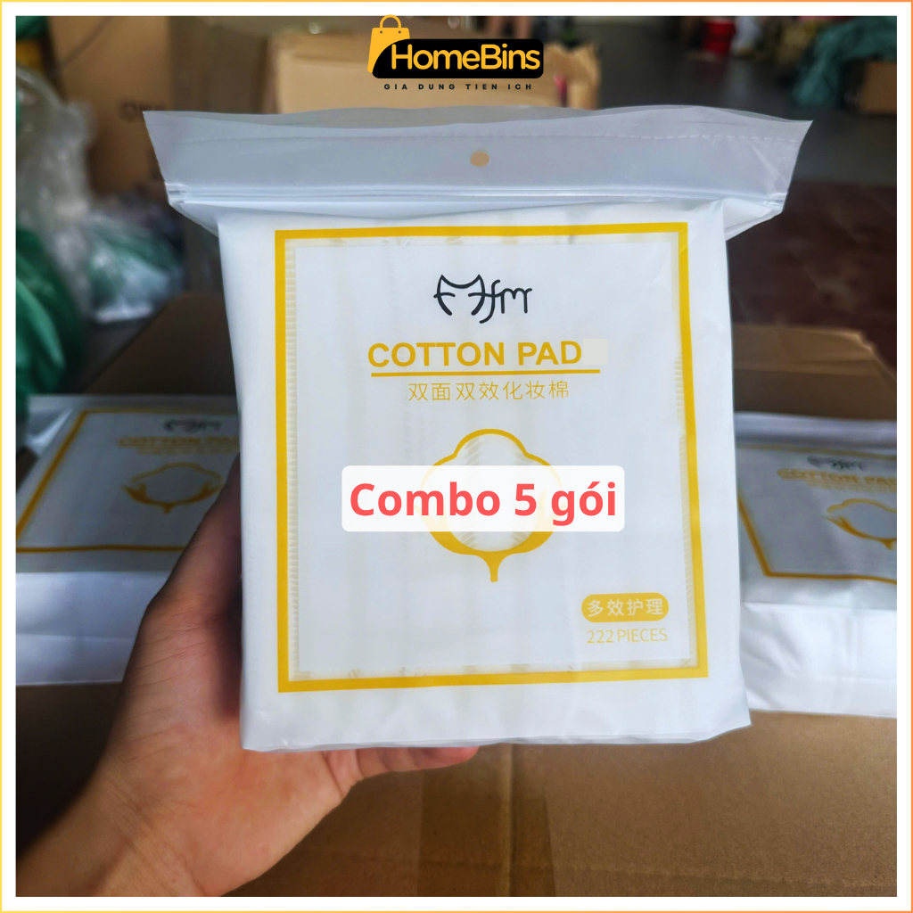 [COMBO] 5 Gói Bông Tẩy Trang 222 Miếng Cotton Pads 3 Lớp Sợi Tự Nhiên Mềm Mịn