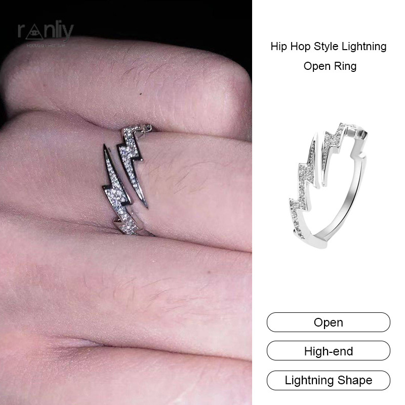 🍑RY🍑Nam Lightning Hip Hop Nhẫn Mở Có Thể Điều Chỉnh Thiết Kế Niche Phụ Kiện Thời Trang