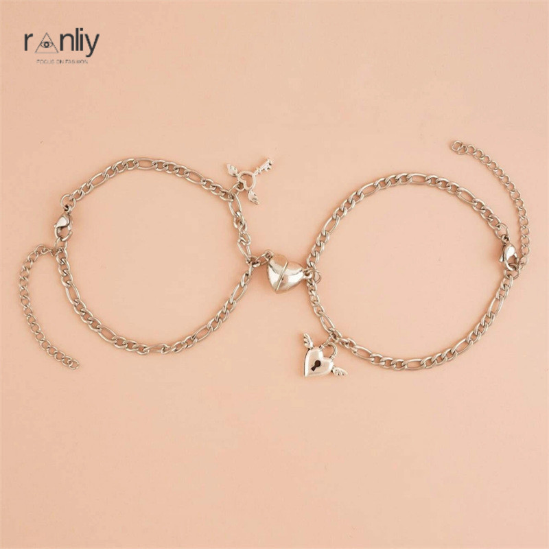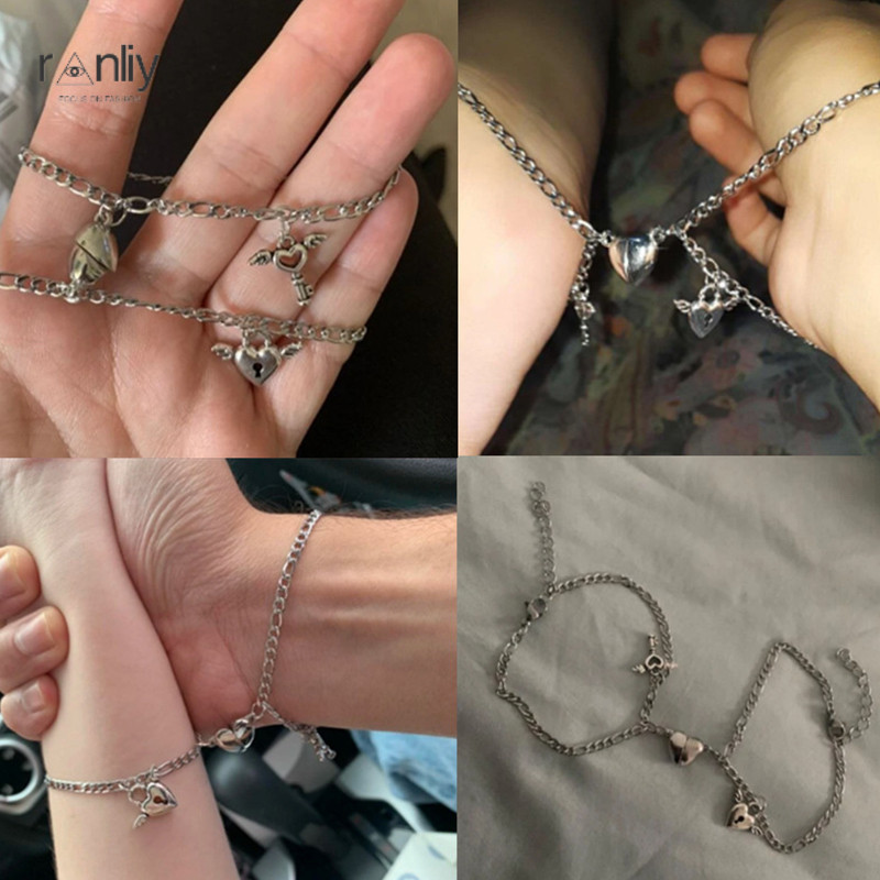 🍑RY🍑Vòng Tay Cặp Đôi Bằng Thép Không Gỉ Khóa Nam Châm Hình Trái Tim Đơn Giản,Vòng Tay Đơn Giản Basic Cho Cặp Đôi