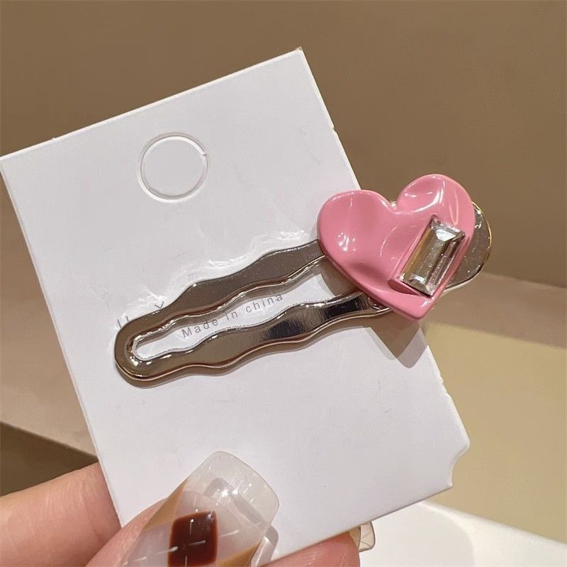 🍑RY🍑Kẹp Tóc Kim Loại Hình Mỏ Vịt / Trái Tim Đính Đá Lớn Kiểu Hàn Quốc Ngọt Ngào Cho Nữ