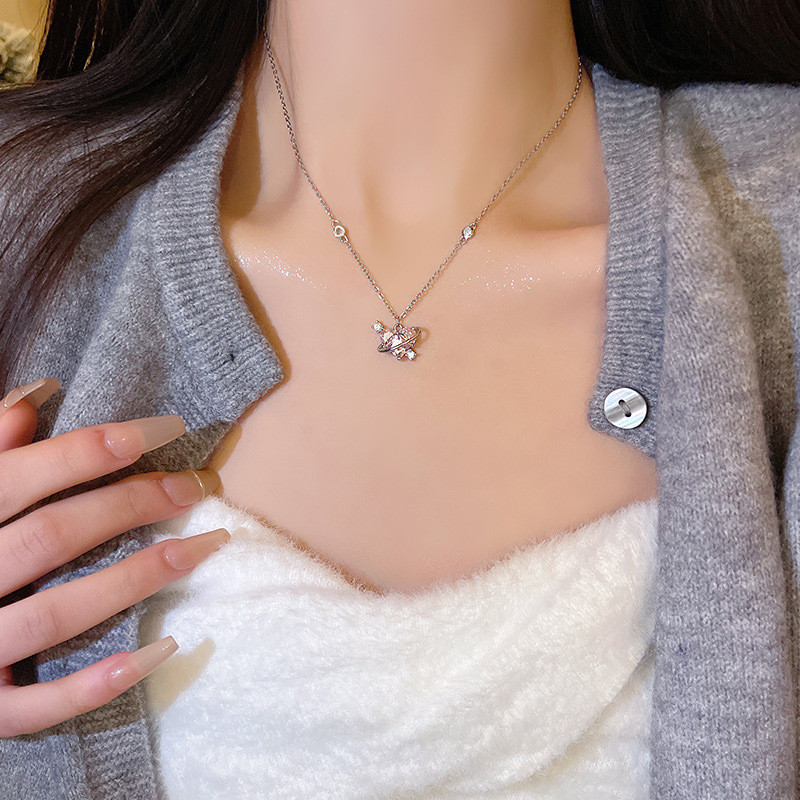 🍑RY🍑Hồng Kim Cương Trái Tim Vòng Cổ Ánh Sáng Ngọt Ngào Vòng Cổ Sang Trọng