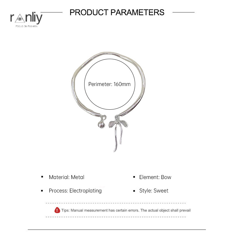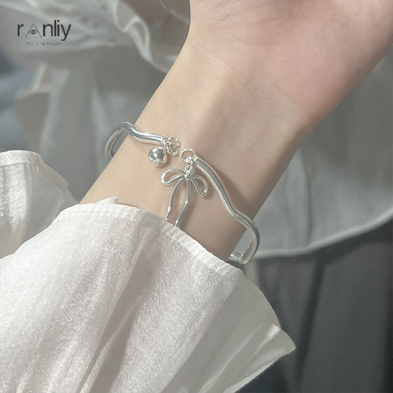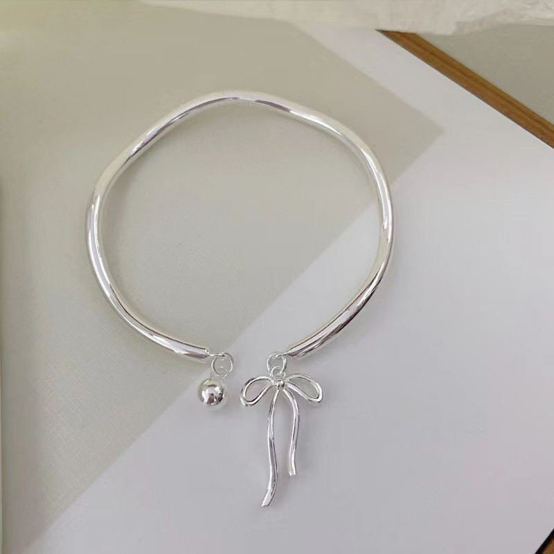 🍑RY🍑Vòng tay bạc mặt hình nơ chuông có thể điều chỉnh kích thước thời trang nữ