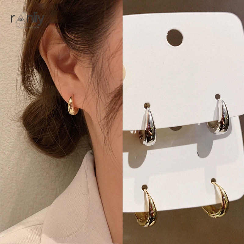 🍑RY🍑khuyên tai kẹp kim loại cao cấp phong cách Hàn Quốc thời trang bông tai bạc
