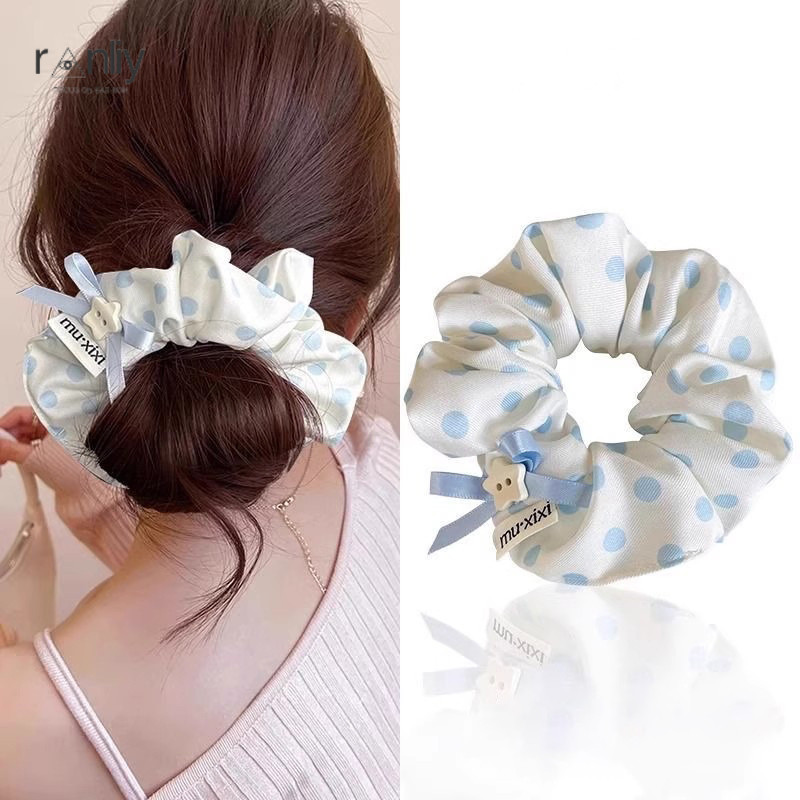 🍑RY🍑Thời trang Hàn Quốc nơ xanh chấm bi dây tóc nữ ins dễ thương sinh viên quà tặng sinh nhật