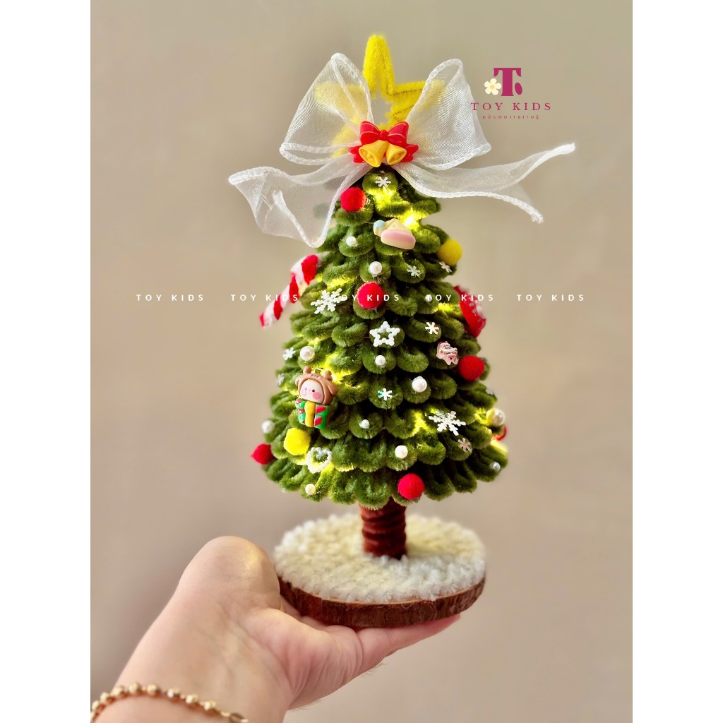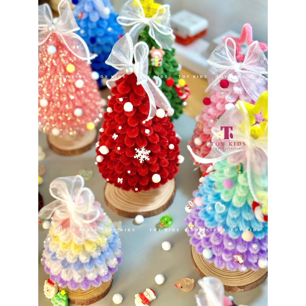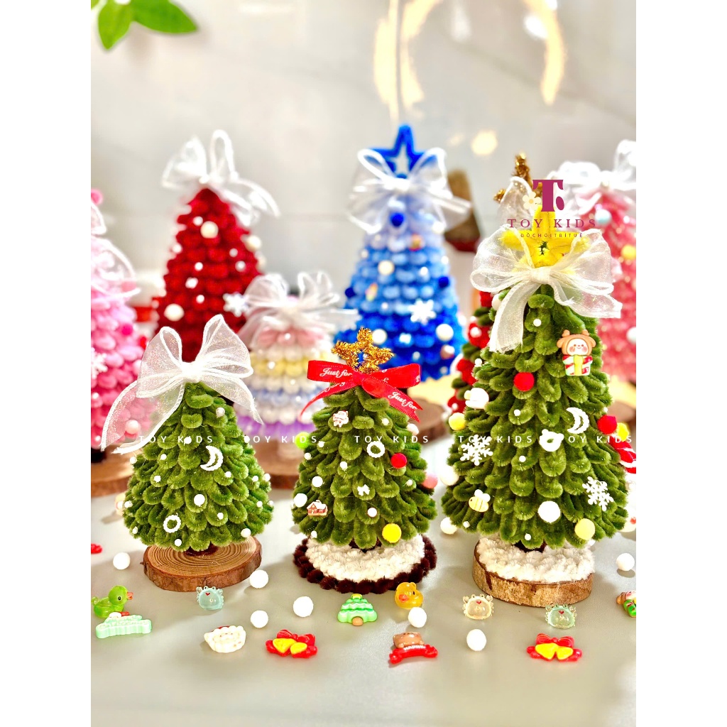 [TẶNG ĐÈN - THÀNH PHẨM] Cây Thông Noel Kẽm Nhung Handmade size 15cm & 25cm làm Quà tặng, Trang trí Giáng sinh - TOYKIDS
