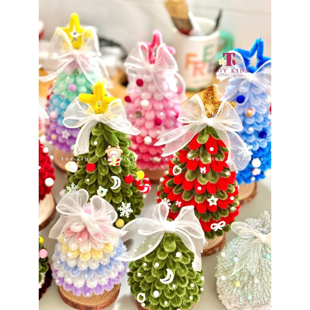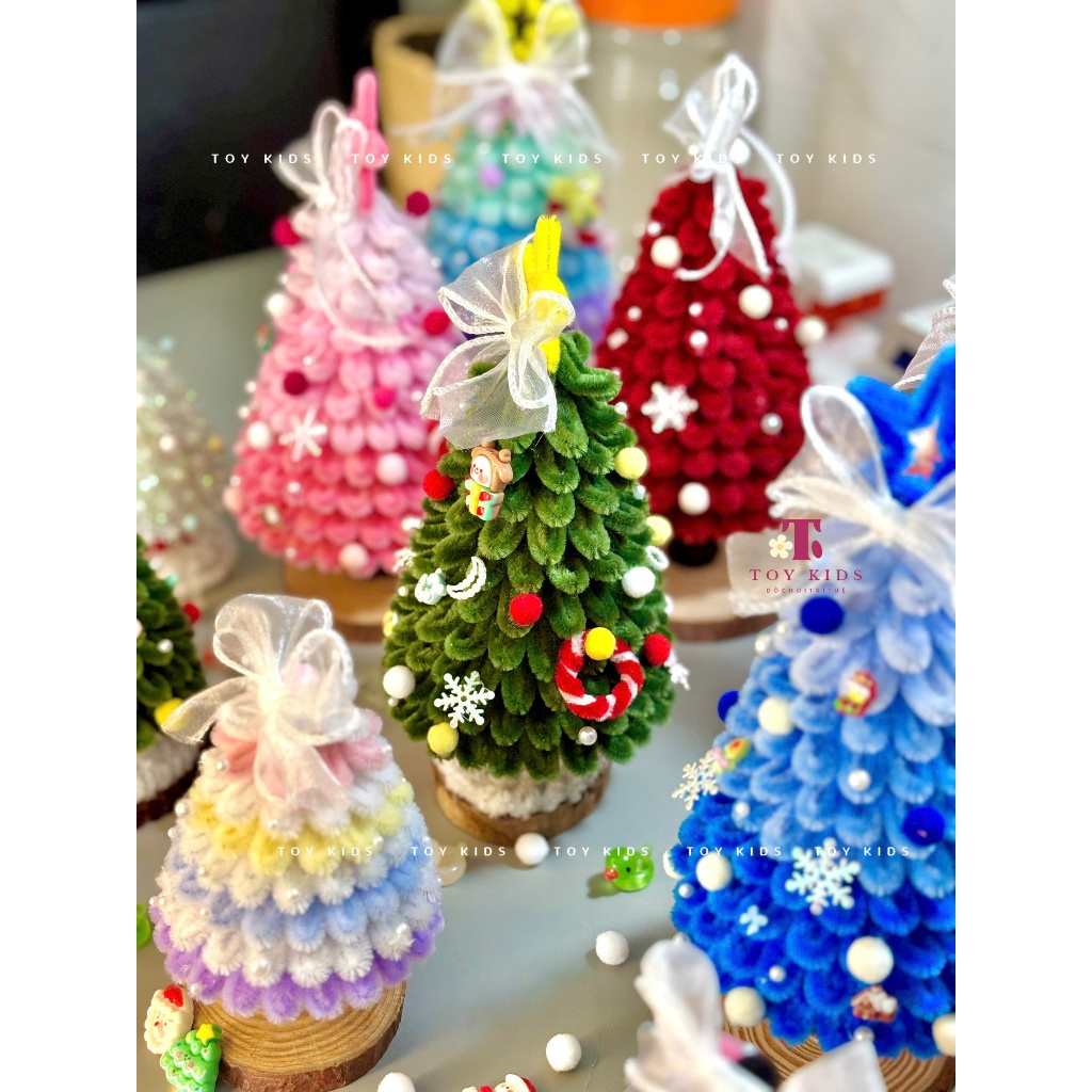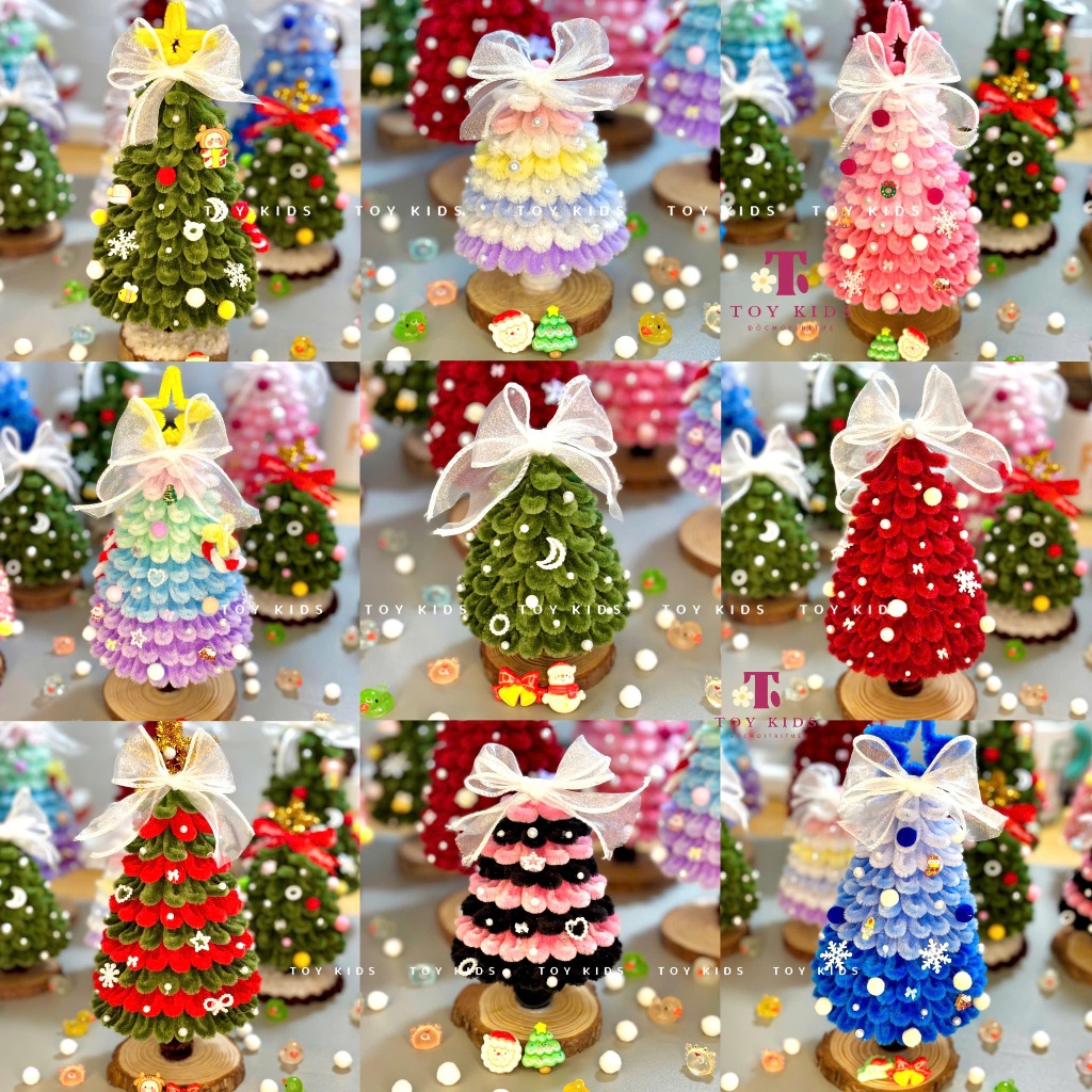 [TẶNG ĐÈN - THÀNH PHẨM] Cây Thông Noel Kẽm Nhung Handmade size 15cm & 25cm làm Quà tặng, Trang trí Giáng sinh - TOYKIDS