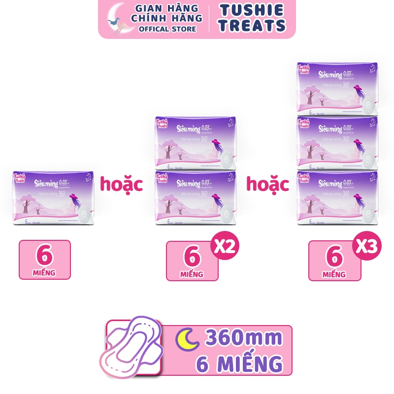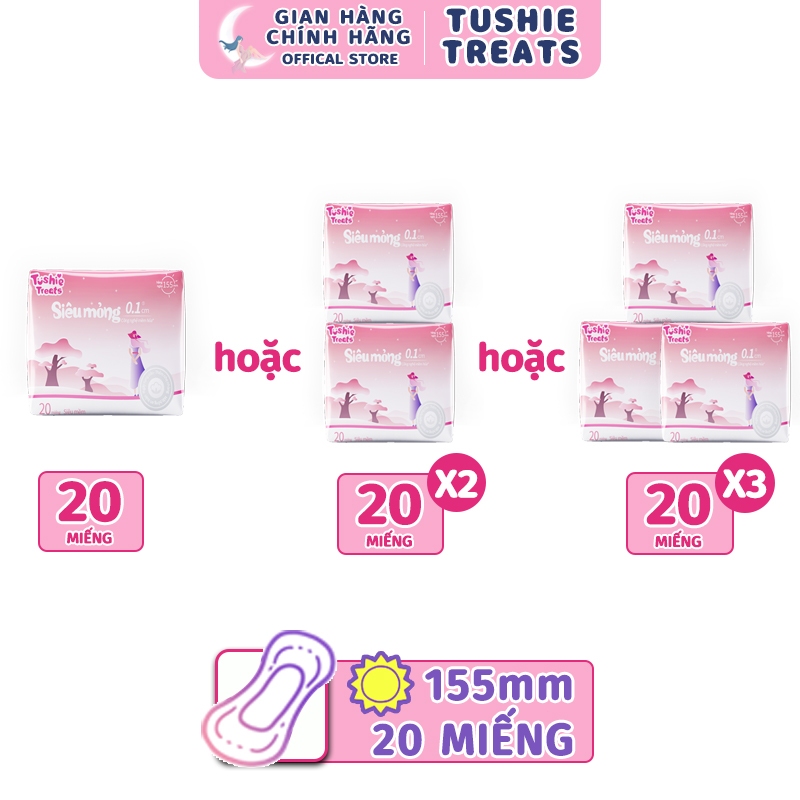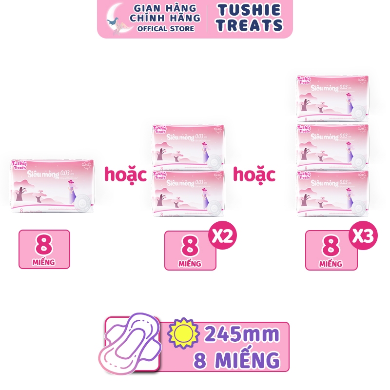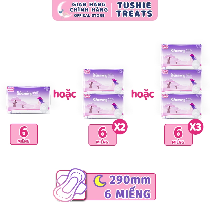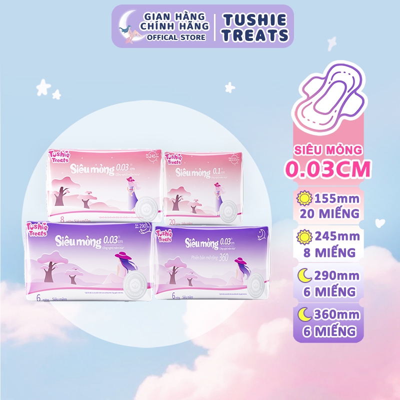 Băng Vệ Sinh Tushie Treats Ban Ngày Ban Đêm Bản Nâng Cấp Siêu Thấm Siêu Mỏng Cánh Chống Tràn 15cm 24Cm 29cm 36cm