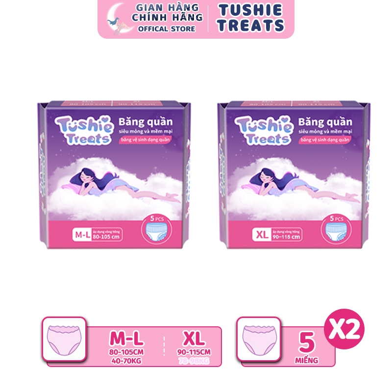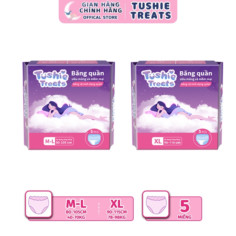 [CHE TÊN] Combo 10 miếng băng vệ sinh dạng quần Tushie Treats size M-2XL, Quần bvs mềm mịn, không cộm, không lộ viền