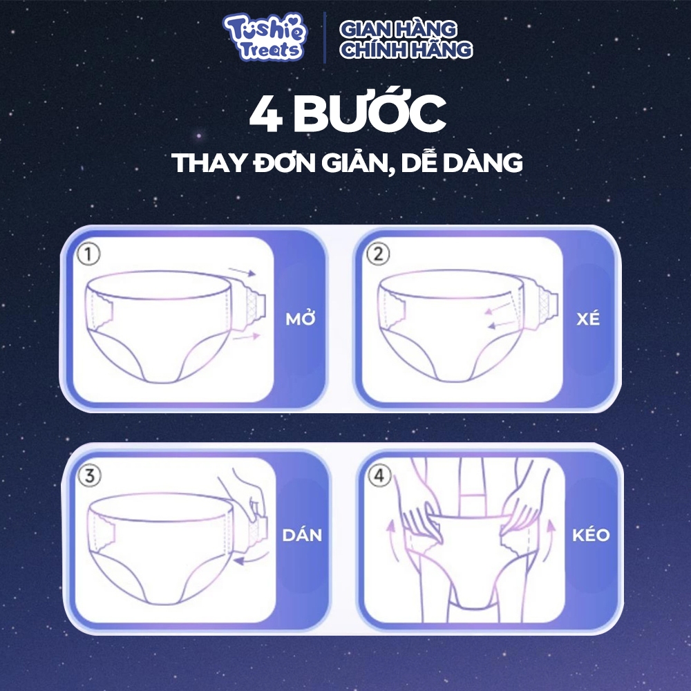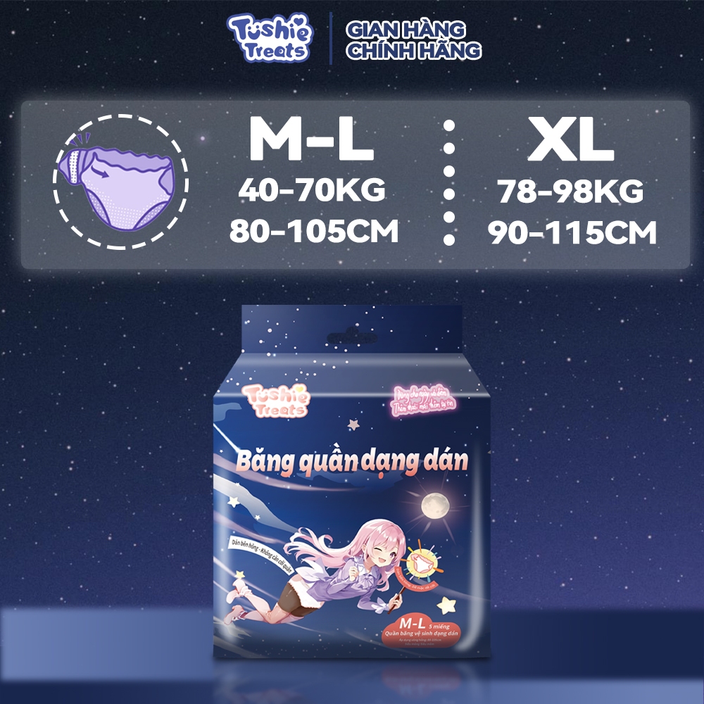 Băng vệ sinh Quần Dạng Dán Tushie Treats- Quần BVS Dán Bên Hông, Thay Không Cần Cởi Size M/L-XL/2XL tương đương 40-98KG