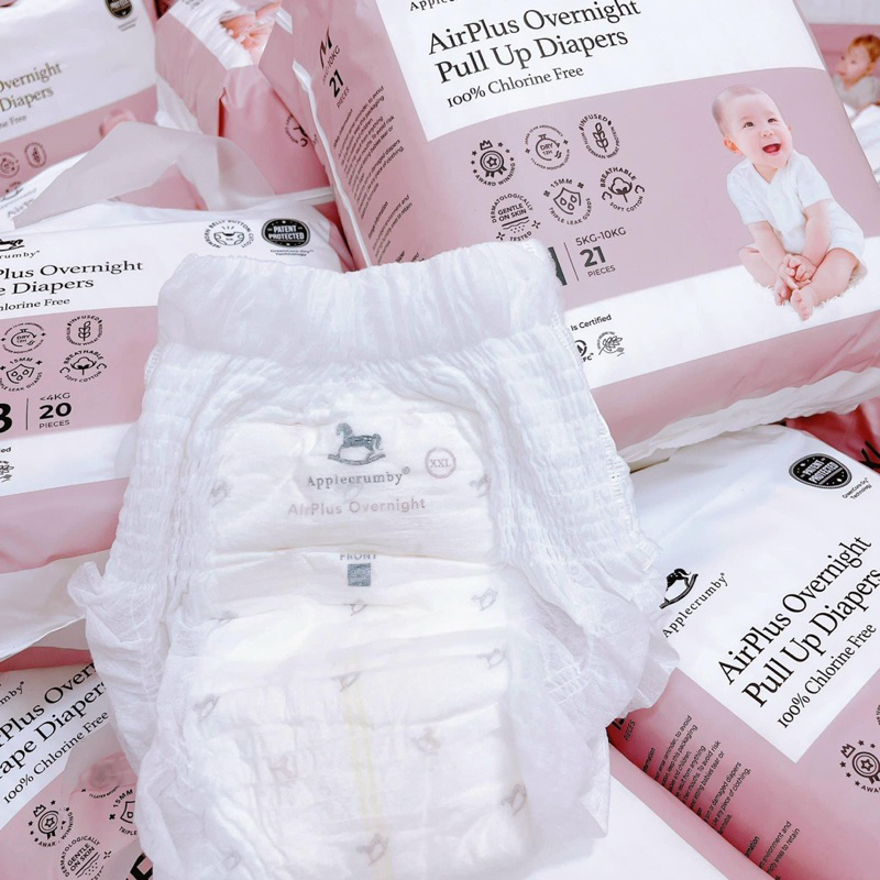 [Thế Giới Mẹ Bỉm Sữa] Combo 4 Bịch Bỉm Đêm Applecrumby Airplus Mini Siêu khô thoáng cho bé đóng đêm - thegioimebimsua