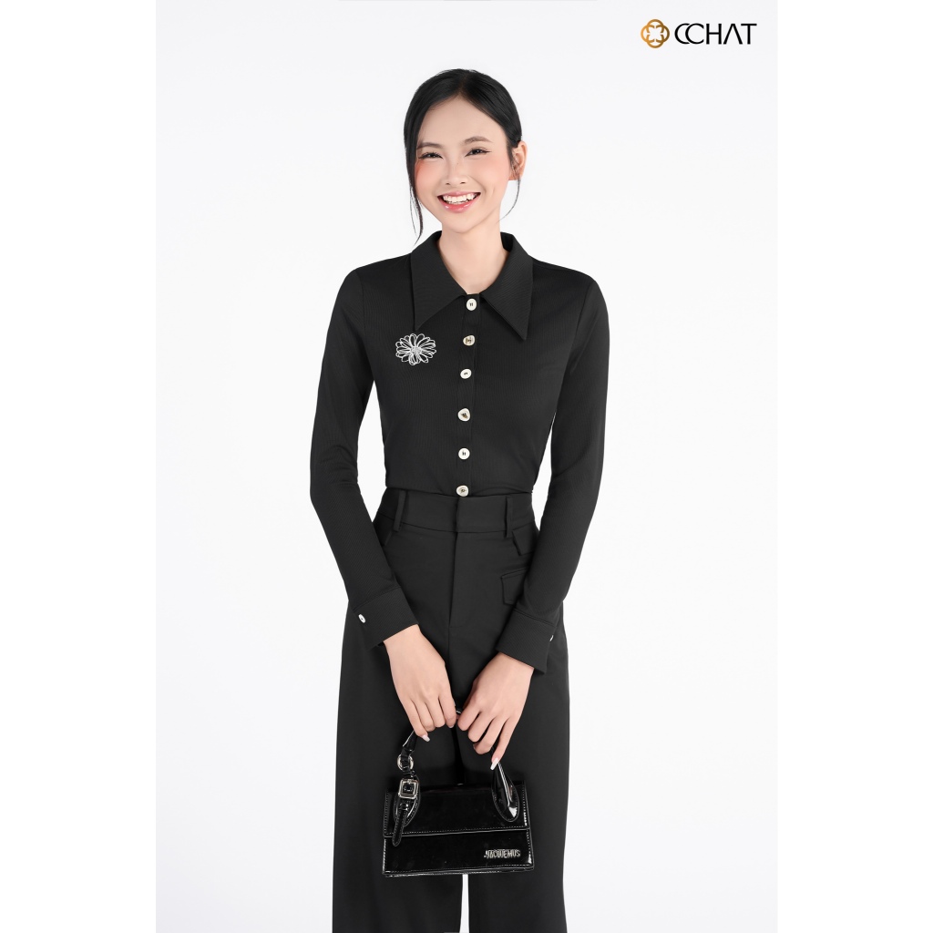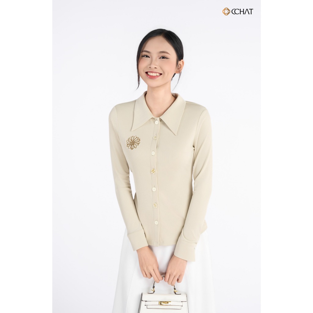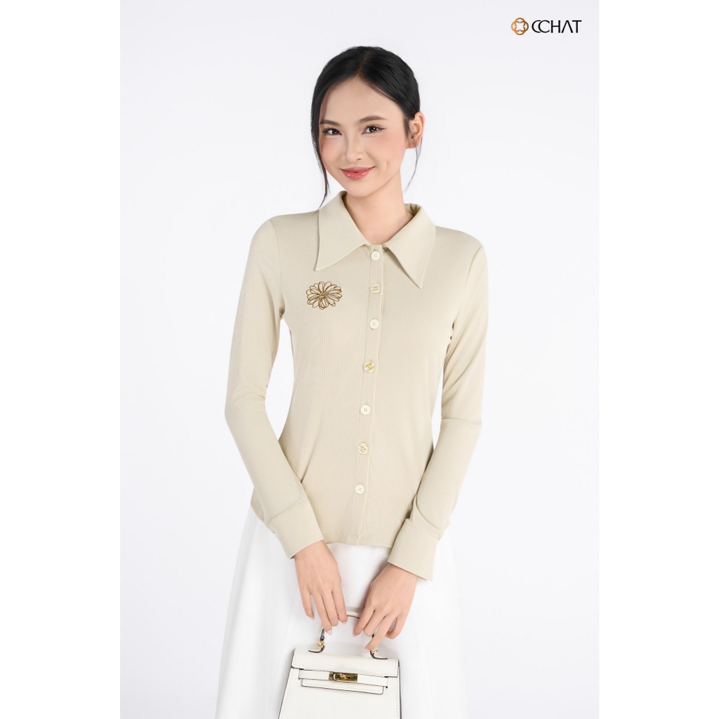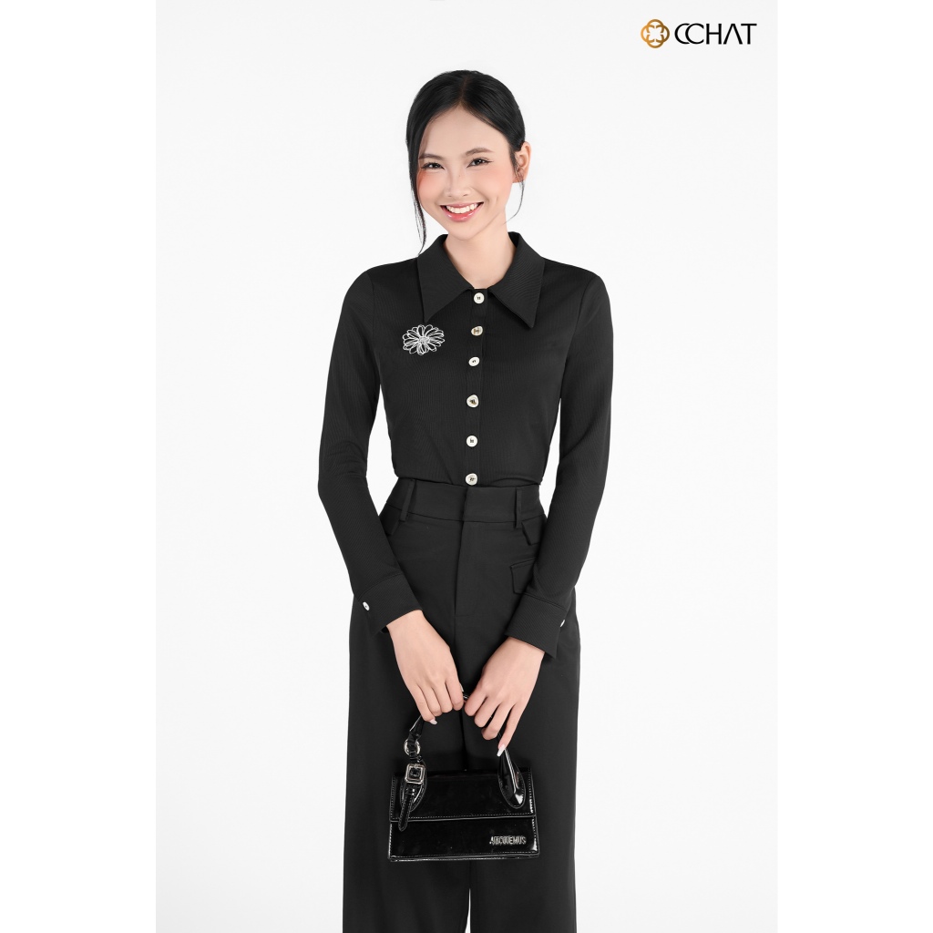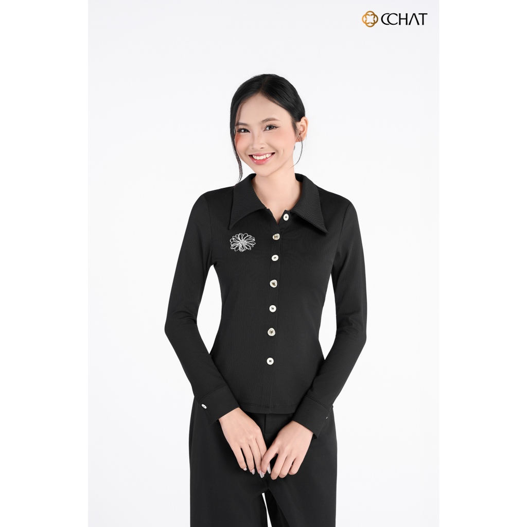 Áo Thun Nữ 𝐂𝐂𝐇𝐀𝐓 Dáng Ôm Thêu Hoa Chất Liệu Co Giãn Cao Cấp 16TDC2001OT