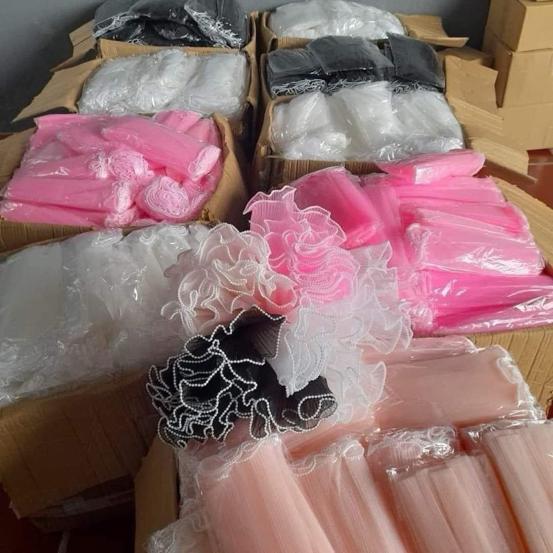 GIấy Gói Hoa Voan Ngọc, Voan Sóng Viền Ngọc Cuốn Thành Bánh Sinh Nhật, Trang Trí Bó Hoa