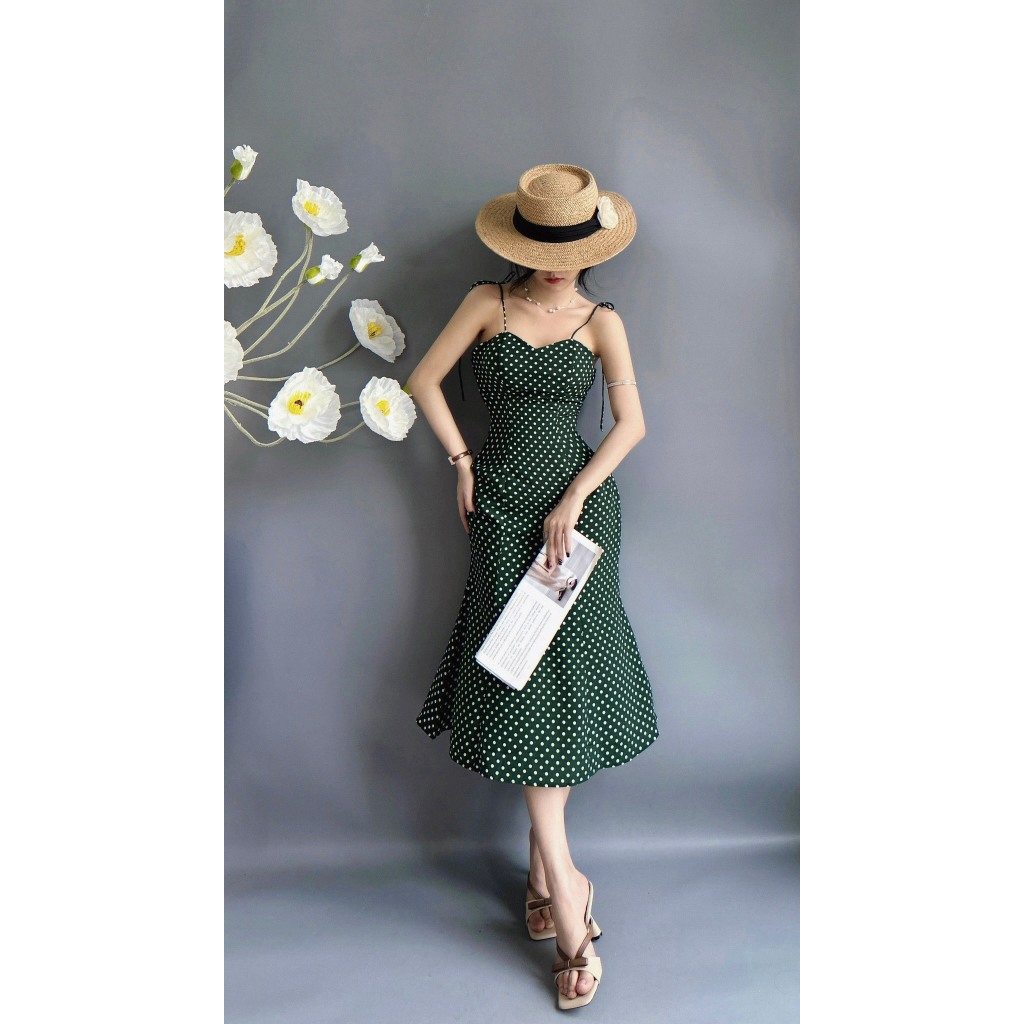 Daria chấm bi thiết kế tôn dáng váy 2 lớp quyến rũ sang trọng nhẹ nhàng , dáng váy đuôi cá xoè nhẹ Emera