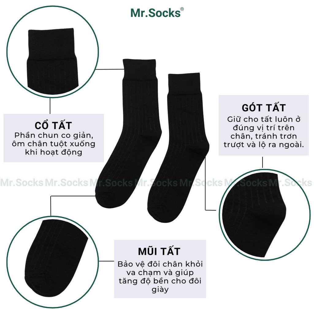 Hộp 5 đôi tất nam cổ cao công sở Mr.Socks, vớ đen dài mang giày tây cao cấp, hút ẩm thoáng khí - TAYGANCHIM-DEN-CB5