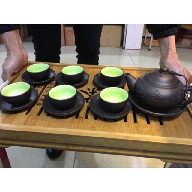 Ấm chén tử sa hoa khắc Bát Tràng 280ml
