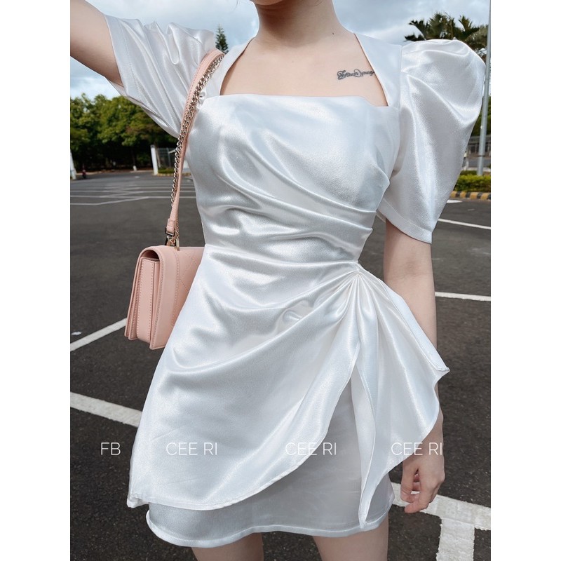 ( ẢNH THẬT - CHÍNH CHỦ CEE RI ) Váy cổ vuông tay bồng đỏ / trắng
